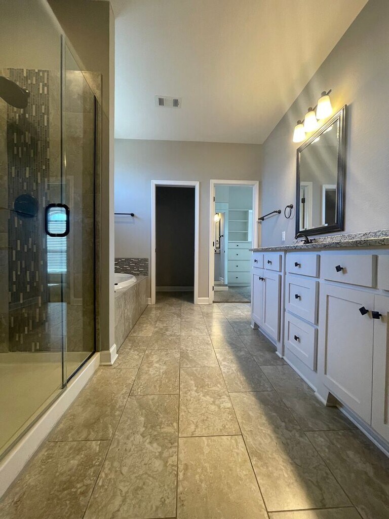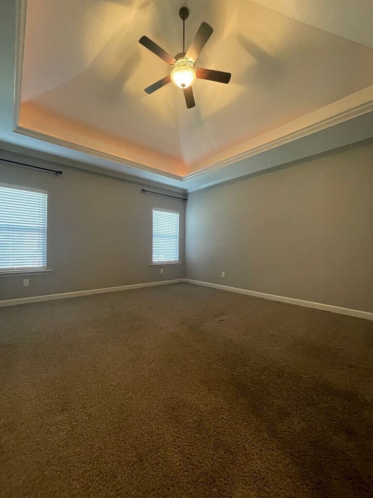 This beautiful location is ready to be called home! The living room feels grand with high ceilings and wooden beams, all open to the kitchen and dining space! You'll love the fireplace! The kitchen is ready with a fridge, gas range, microwave, dishwasher, and walk-in pantry! Just off the living space is a convenient half bath and large closet. Outside you can enjoy a private oasis: covered deck and fenced yard! Escape to the primary bedroom with vaulted ceiling and layered lighting. Primary bathroom has a walk-in shower and a soaking tub for whatever your day calls for. His and her sinks, hidden commode, and HUGE walk-in closet with built-in dresser. On the other side of the home, you will find 3 more bedrooms, a full bath, and laundry room. All the bedrooms have big walk-in closets. Built-in storage in the laundry room, washer and dryer stays! Built-in mudroom locker right off the garage for your convenience. Two car garage for secure parking. This location is just minutes to the interstate, Highway 107, Airbase, Walmart, and Aldi's! To schedule a tour, please apply at Renter's insurance is required.