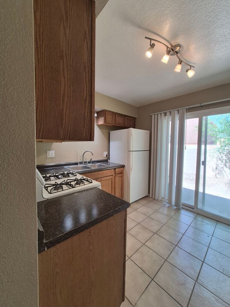 This one-bedroom, one-bath home in Albuquerque offers practical, comfortable living with thoughtful details throughout. Ceiling fans help maintain airflow, and a security screen at the front door adds an extra layer of entry protection. The property includes a small fenced backyard, providing a private outdoor area, plus a separate storage room for belongings. Ideal for someone seeking a low-maintenance, well-appointed single-bedroom residence in the city.