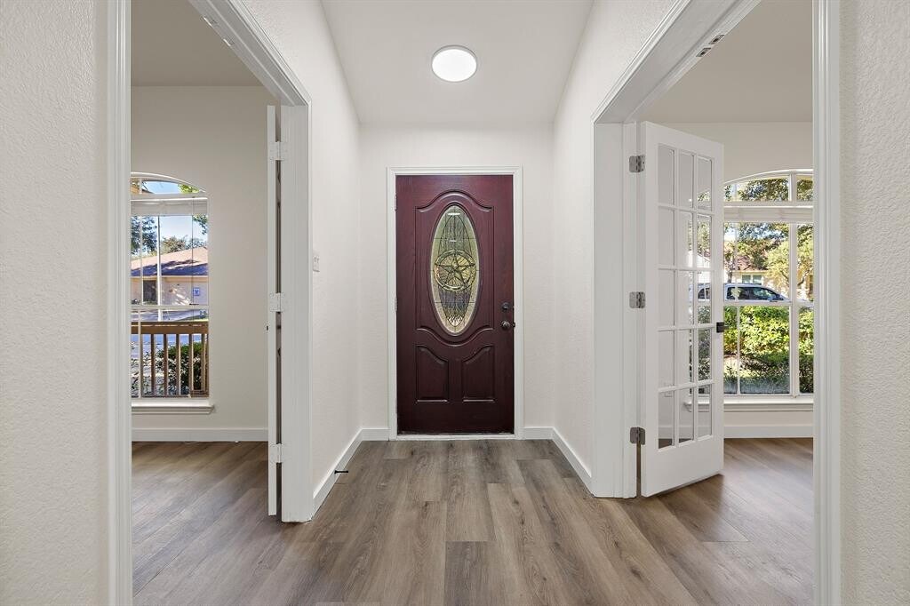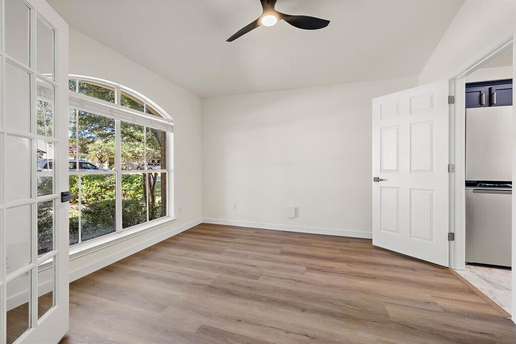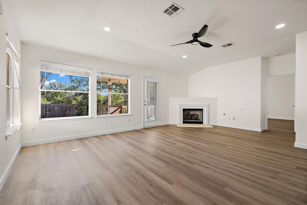 This exquisitely remodeled 4-bedroom + office, 2-bath residence offers an unparalleled blend of modern luxury and serene greenbelt living in the highly sought-after Stone Oak Preserve community. With no back neighbors and direct access to nature's beauty, this home is a rare find. Step inside and be greeted by brand new, seamless luxury vinyl flooring that flows throughout the spacious, freshly painted interior absolutely no carpets! The heart of this home is the fully remodeled modern chef's kitchen, a true culinary dream. Imagine crafting gourmet meals surrounded by gleaming quartz countertops, a generous island perfect for entertaining, and top-of-the-line stainless steel appliances. Unwind in the large living room, bathed in natural light, or host memorable dinners in the designated dining area. Need a dedicated workspace or a quiet spot to relax? The enclosed office offers fantastic flexibility The expansive master bedroom is your private retreat, featuring a completely remodeled en-suite bathroom. Indulge in the luxurious shower, soak in the separate garden tub. A large walk-in closet provides ample storage. The updated common bathroom also shines with quartz countertops and new flooring, reflecting the home's consistent high-end finishes. Practicality meets style in the large pantry and a dedicated laundry room. The beautifully landscaped front and back yards create stunning curb appeal and a tranquil escape, complete with an automatic sprinkler system for easy maintenance. Enjoy evenings on the covered patio, overlooking the peaceful greenbelt your own private sanctuary. All Hendricks Real Estate residents are enrolled in the Resident Benefits Package (RBP) for $49.95/month which includes liability insurance, HVAC air filter delivery (for applicable properties), move-in concierge service making utility connection and home service setup a breeze during your move-in, on-demand pest control, and much more! More details upon application.