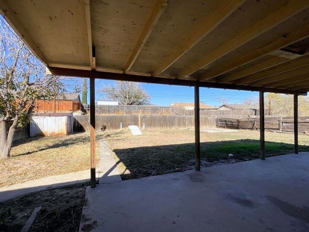 Discover the ideal blend of comfort, convenience, and classic Texas charm in this spacious 3-bedroom, 2-bath ranch-style rental. Nestled on a tranquil lot in a quiet BigSpring neighborhood, this home offers everything you need for relaxed living and effortless entertaining. Key Highlights: + COOL COMFORT ALL YEAR ROUND – Ceiling fans throughout keep every room breezy, while central heat & air conditioning ensures perfect indoor climate no matter the season. + STYLISH, LOW-MAINTENANCE FLOORING – Beautiful wood-look luxury vinyl planking adds a touch of elegance and is easy to clean, perfect for busy families or professionals. + OUTDOOR OASIS – A large fenced backyard provides privacy for pets, kids, or garden projects, complemented by a generous covered back porch for al-fresco meals and weekend relaxation. + EXTRA STORAGE & SAFETY – A handy storage shed stores tools and gear, and a backyard storm shelter offers peace of mind during severe weather. + CONVENIENT PARKING & LAUNDRY – One-car garage with an attached laundry area makes chores a breeze and protects your vehicle from the elements. + SHADED CURB APPEAL – A lush, shady front yard welcomes guests and creates a cool, inviting entrance. Whether you’re looking for a family-friendly space, a home office setup, or a peaceful retreat after a long day, this ranch-style gem delivers style, practicality, and a warm Texas welcome. Schedule a tour today and make this shady Ranch Retreat yours!