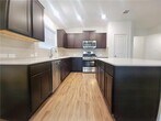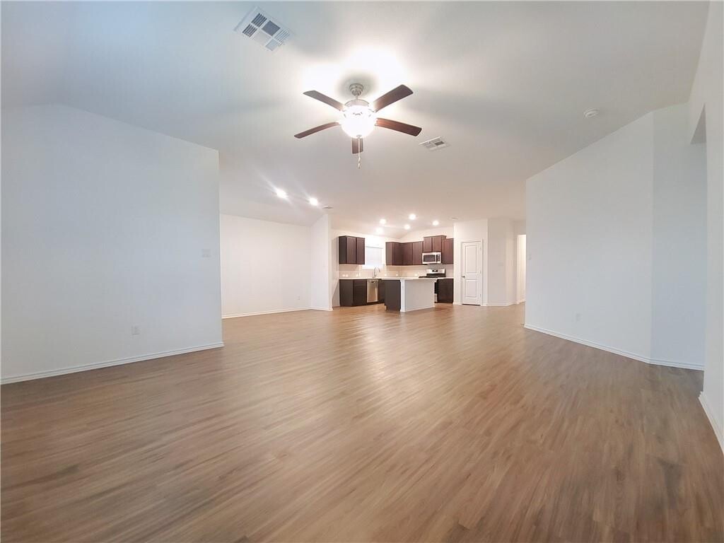 Discover this charming single-story home offering 3 bedrooms and 2 bathrooms in the heart of Hutto, TX. Ideally located near shopping, dining, and major roadways, this spacious residence features an open-concept layout designed for modern living. The bright and airy living room is enhanced by recessed lighting, large windows that flood the space with natural light, dark vinyl flooring, and ceiling fans for year-round comfort. The thoughtfully designed kitchen showcases white quartz countertops, rich chocolate-colored cabinetry, abundant storage, and sleek stainless steel appliances—perfect for everyday meals or hosting holiday gatherings. A stunning center island provides additional prep space and serves as a natural gathering spot, seamlessly open to the living area. The split-bedroom floor plan offers privacy for all. Two secondary bedrooms and a shared bath are located toward the front of the home, while the private primary suite is tucked away at the back. The primary bedroom features generous space, large windows, and a spacious walk-in closet. The spa-inspired ensuite bathroom includes a double vanity, soaking tub, and walk-in tiled shower. Additional highlights include a large dedicated office, separate laundry room, and a 2-car attached garage. Step outside to enjoy the fully fenced backyard—ideal for entertaining, relaxing outdoors, or enjoying time with pets. Conveniently located near Toll Road 130 and Highway 79, this home offers easy access to Round Rock, Austin, and everything the growing Hutto area has to offer. MLS ID 1794048