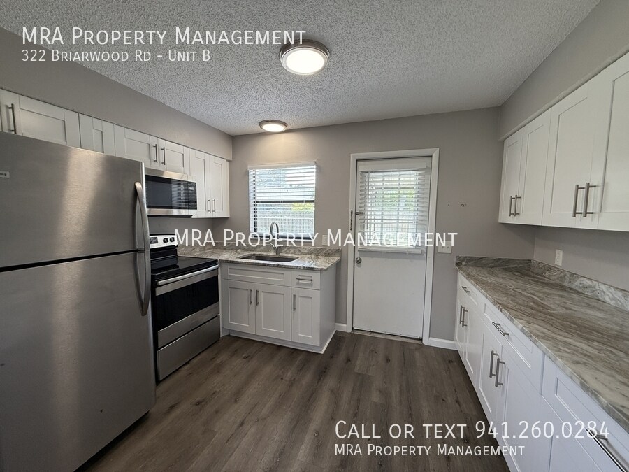 You won't want to miss this beautifully updated 2-bedroom, 1-bathroom duplex in the desirable Briarwood community! Step inside and be welcomed by an abundance of natural sunlight pouring through large windows, highlighting the open floor plan and nearly 900 sq. ft. of bright, inviting living space—perfect for entertaining or relaxing at home. Enjoy stylish wood laminate flooring, neutral paint, and modern ceiling fans throughout, creating a fresh and comfortable atmosphere. The chef-inspired kitchen features gorgeous granite countertops, ample cabinet space, and stainless steel appliances, including a refrigerator, range, and microwave. Both bedrooms offer spacious closets and plenty of natural light. The bathroom includes a tub and shower combo, bright lighting, and extra storage space providing functionality and style. Relax on your private screened-in lanai, the perfect spot to enjoy your morning coffee, soak up the Florida sunshine, or unwind during an afternoon rain shower. This home also includes washer and dryer hookups and a covered carport with extra storage, offering convenience and protection from Florida's weather. Pets welcome, no dangerous breeds, with additional pet rent. Located just minutes from shopping, dining, entertainment, and Florida's award-winning beaches, this home puts you right in the heart of it all. Don't wait—schedule your showing today with MRA Property Management! We conduct a full background screening, including credit, income verification, landlord references, and eviction history. While we review the full application, a credit score of 550 or higher is generally required. For more details, to schedule a tour, or to apply, please call .