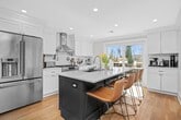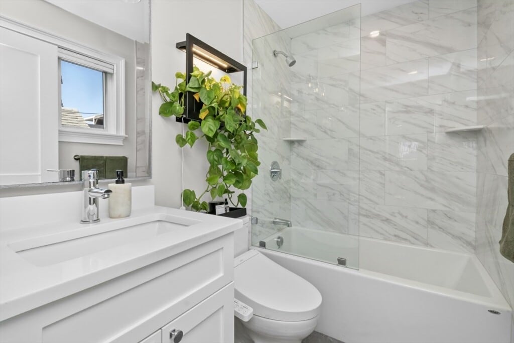 Recently built (2022) 3 bed,3 bath home offering the privacy and feel of a single-family residence. Set back from the street,this home is quiet and filled with natural light throughout. Main living level features 10’ ceilings,white oak hardwood floors,and an open-concept layout. Kitchen includes custom cabinetry,quartz countertops,and flows directly into the living and dining areas with a gas fireplace. Private outdoor space includes an expansive deck with city views and a lower level patio. The lower level includes a guest suite and a separate home gym. Two large off-street parking spaces included,equipped with one EV charger. Additional features include central air,in-unit laundry,and private entrance. Offered fully furnished at $8,950/month. MLS# 73500688