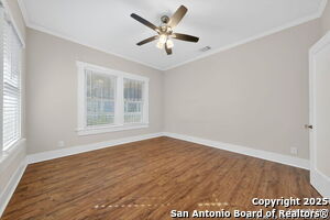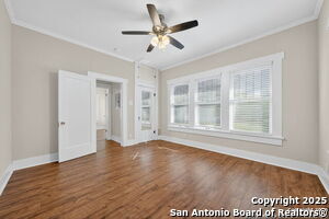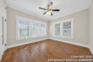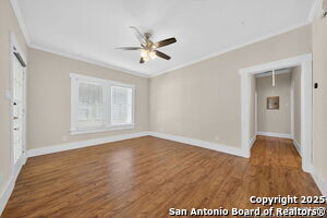 Love where you live in this beautifully updated 2-bedroom, 1-bath home featuring stunning hardwood floors and elegant finishes throughout. The gourmet kitchen offers stainless steel appliances, a gas range, and granite countertops-perfect for any home chef. Enjoy the convenience of a full laundry room complete with washer, dryer, and sink. Recess lighting and ceiling fans in each bedroom add warmth and character to every room. The spacious backyard provides mature shade trees and a storage shed, ideal for outdoor living. Located just minutes from downtown nightlife, shopping, dining, museums, and The San Antonio Zoo-this home truly combines comfort, charm, and convenience.
