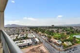 Rachael TharpHighly coveted strip-facing high-floor corner residence. This pristine 2 bedroom/2 bath + den showcases panoramic views of the Strip, MSG Sphere, Downtown, Las Vegas Country Club and mountains. Situated between the iconic Fontainebleau and the vibrant Downtown Arts District, just moments from boutique shops, top-rated dining, craft cocktail lounges and local breweries. Enjoy an array of luxury amenities, including a resort-style pool and spa with waterfalls, tennis and pickleball courts, fitness center, conference room, resident lounge, 24-hour security, and valet.