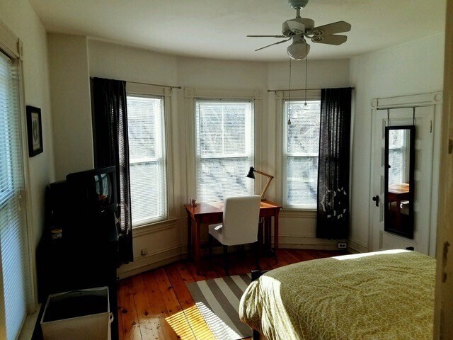 Duplex apartment with turn of the century character including lots of windows and lovely sunlight. The quiet four unit house is located just a block from the riverside walking trail. There are original pine floors throughout with galley kitchen with dishwasher,pantry and small eat-in are opening onto the deck. The living room and bedroom are both good sized with great light. The bathroom includes vintage tub with shower. The third floor office is a unique space in the top floor of the house. There is shared laundry and storage in the basement. Parking in back of the house is included. This is a no smoking house and no dogs allowed. Cats are negotiable. First,Last and 1/2 month security are required to move in. Utilities are paid by the tenant ( gas heat,hot water and electric). Lease terms to be discussed. MLS# 73455713