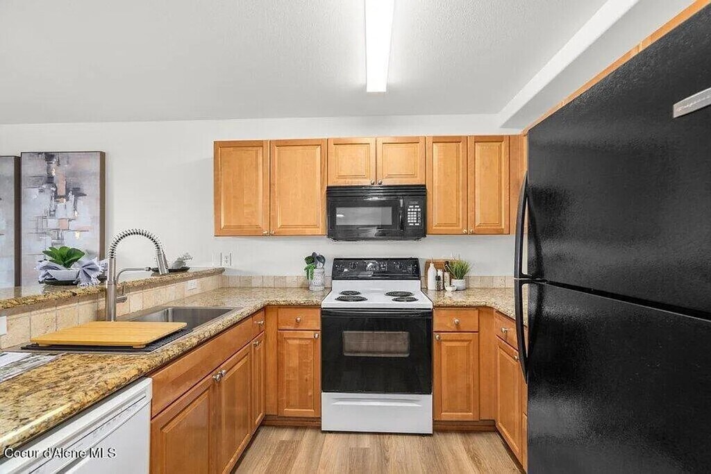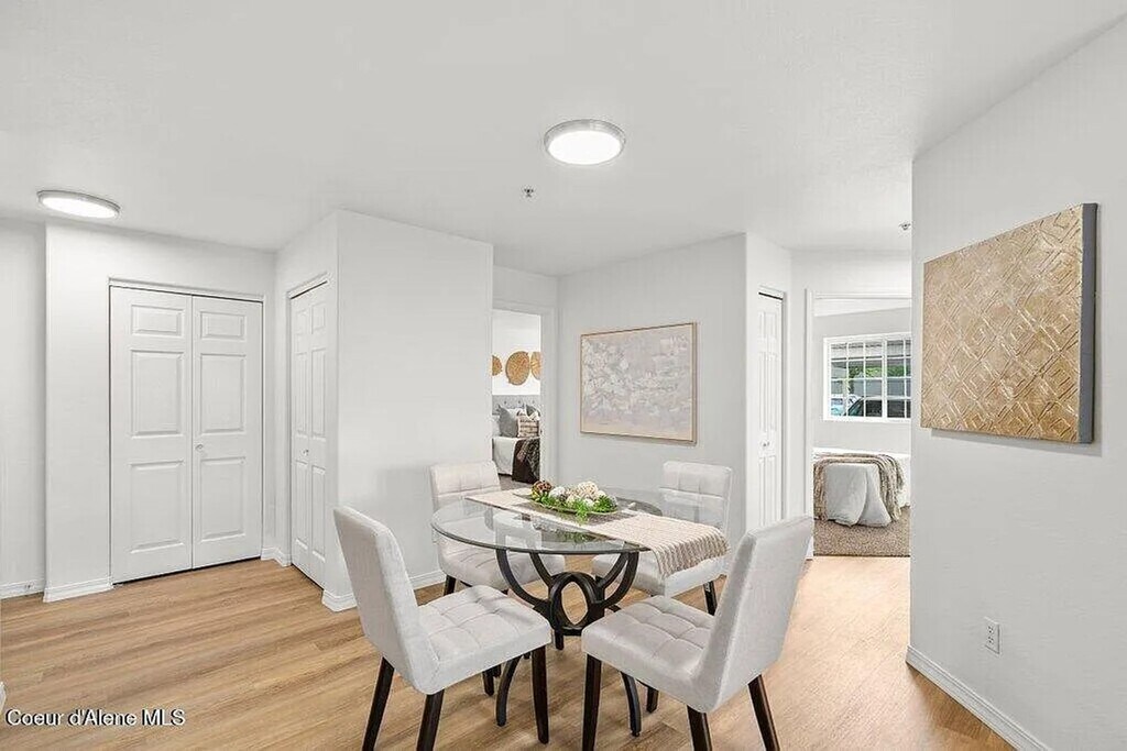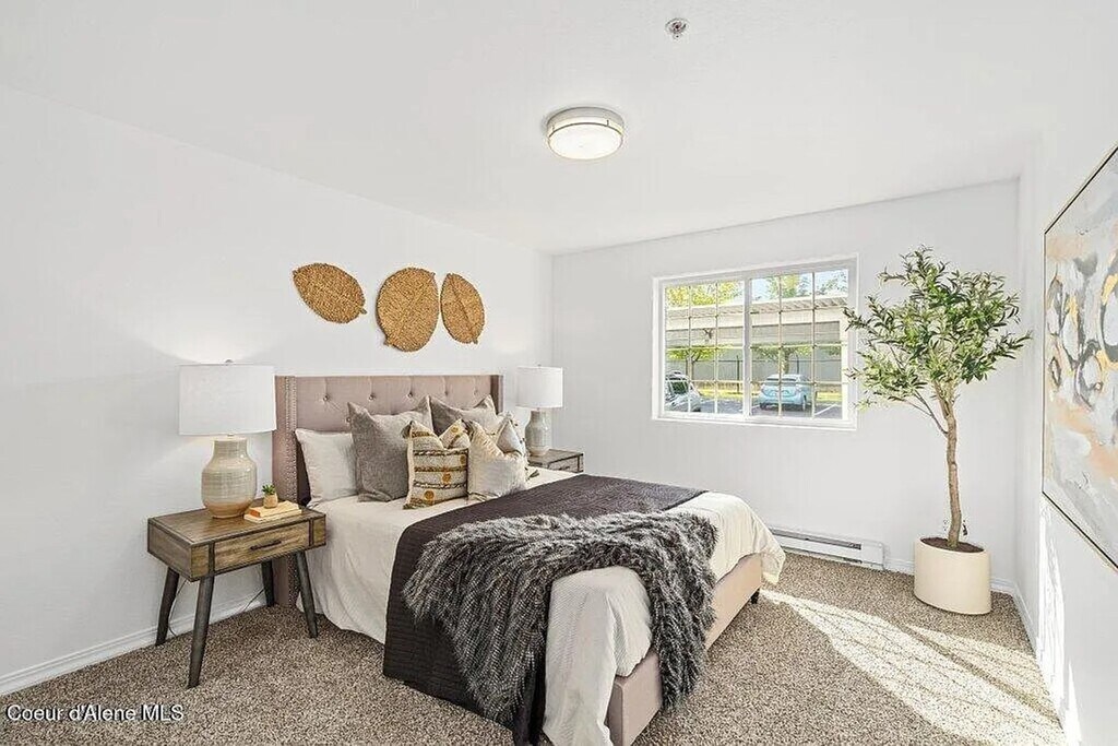Welcome to this beautifully maintained and spacious lower-level condo located in the highly desirable Promenade Condos community in Post Falls. This bright and inviting home features stylish new flooring, abundant natural light, and a comfortable, open layout—perfect for those seeking convenience, privacy, and low-maintenance living. Property Features • 1,214 sq ft of single-level living • 3 bedrooms / 2 full bathrooms • New, trendy flooring—LVP in main areas & carpet in bedrooms • Bright kitchen with abundant cabinetry, breakfast bar & dining area • Spacious primary suite with ensuite bath & walk-in closet • Washer/dryer hookups • Heating: Electric, baseboard & ductless system • Cooling: Wall A/C unit • High-speed internet availability Exterior & Parking • Covered deck with additional outdoor storage • Two storage closets—one at the front entry and one on the deck • 1 designated covered parking space, plus open parking nearby • Level lot in a well-maintained community Included in Rent • Water • Sewer • Trash • Snow removal • Grounds maintenance Location • Minutes to I-90 and Highway 41 • Quick access to Spokane or Coeur d’Alene • Close to biking/walking trails, parks, shopping & restaurants • Located in Post Falls School District 273 Policies • No pets allowed • No smoking anywhere on the premises • Renter’s insurance required We do not rent sight unseen. Please drive by to view the neighborhood first. If interested in scheduling a showing, contact: Lakeside Property Management or *Property information deemed reliable but is not guaranteed*