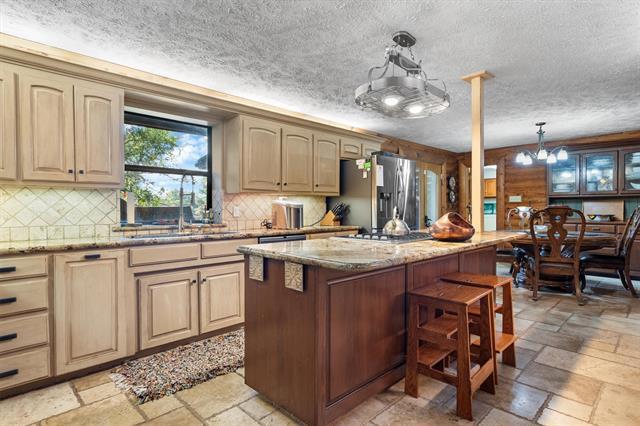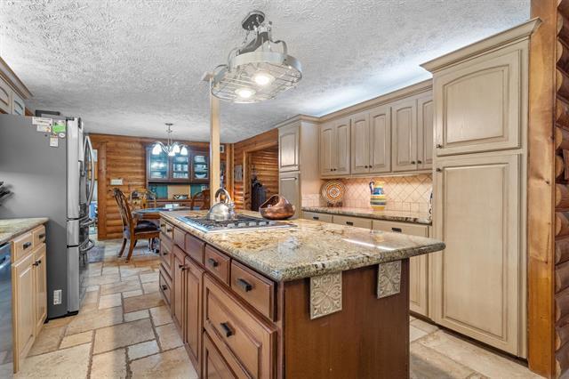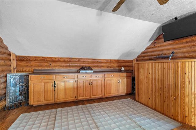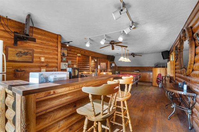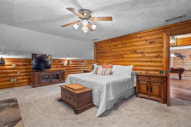 Welcome to your dream home a meticulously maintained log cabin nestled on a lush, tree-filled corner lot in one of the most desirable communities in North Texas. Just a short 10-minute stroll to the lake and moments away from premier shopping & dining, this rare gem offers the perfect balance of tranquility, convenience & lifestyle. Step inside this 4-bed, 2-bath masterpiece, where rustic charm meets modern elegance. Find hand-scraped wood floors & travertine tile thru. Enjoy a chef’s dream kitchen with a large center island, granite counter, travertine backsplash, 5-burner gas range, SSA's & abundant cabinetry. The cozy family room anchored by a gorgeous fireplace is perfect for quiet evenings or lively gatherings. Upstairs discover a sprawling game room featuring a lighted dance floor, DJ booth, wet bar & access to a back deck that leads to a rooftop terrace with panoramic views, an entertainer’s dream! The spacious primary suite showcases a fireplace, spa-like ensuite bathroom with soaking tub, walk-in shower & cedar closet with an ensuite bedroom ideal as a nursery or home office. Appreciate a garage with a dedicated workshop for hobbyists or DIY enthusiasts. Find a large main level utility room with extensive counter and cabinet space for seamless function & organization. Enjoy outdoor entertaining at it’s finest while you relax on the covered porch or host friends on the multiple decks & patios surrounded by serene natural beauty. The home's exterior has recently been upgraded with a CoolWall coating system for structural log maintenance, complete with a transferable warranty for added peace of mind. Just minutes from Double Tree Ranch Park, featuring splash pads, outdoor concerts, fishing, and scenic bike trails. Brand new upstairs AC unit for energy-efficient comfort year-round. Award winning schools. This extraordinary log cabin offers the rare combination of rustic charm, luxury upgrades. A true sanctuary in the heart of the city. NEW PICTURES BY FRIDAY