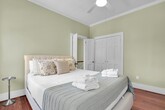 This home is available for guests looking for a 31+ night rental. Specific pricing is available upon request. Monthly rates range from $3500-$5000/month and final rates are based on season and length of stay. Fully furnished- utilities/internet included Welcome to Red Door on Price, where comfort meets convenience for your extended stays! This spacious home offers two bedrooms, 2.5 bathrooms, tasteful furnishings, and an unbeatable location, ensuring a memorable and relaxing experience. What Sets This Home Apart? - Prime Location: Just steps from the beautiful, tree-lined Troup Square, Red Door on Price places you within walking distance of outstanding restaurants and attractions. Enjoy the charm and convenience of calling this your new home away from home. - Tasteful Design and Furnishings: Thoughtfully designed and fully stocked, this home has everything you need for a comfortable extended stay. Relax in the spacious living room with large windows or prepare home-cooked meals in the well-equipped kitchen. Every detail has been considered to enhance your comfort and convenience. - Charming Outdoor Space: Unwind in the quaint courtyard, the perfect place to relax after a long day or to enjoy your morning cup of coffee. This charming outdoor space adds an extra touch of serenity to your stay. Both bedrooms are located upstairs, providing a peaceful retreat! The primary bedroom features a plush queen bed, a smart television, and an ensuite bathroom with a walk-in shower. Down the hall, the second bedroom faces the front of the home and includes a queen-size bed, and a spacious closet, while conveniently located just off the hall near the second full bathroom with a tub-shower combination. What is parking like for this home? Bedroom 1: Queen Bed Bedroom 2: Queen Bed Living Room: Queen Sleeper Sofa What is parking like for this home? Guests will find on-street parking, that is non-metered, on Price and E. Harris Street. We can welcome your dog companions at this pet friendly home, but ask that you find other arrangements for cats, birds, and other furry friends. There is a $250 pet fee (non-refundable) with a 35 lb. maximum weight limit per dog and a limit of 2 dogs per reservation. Some homes may allow larger dogs, please inquire for more information.