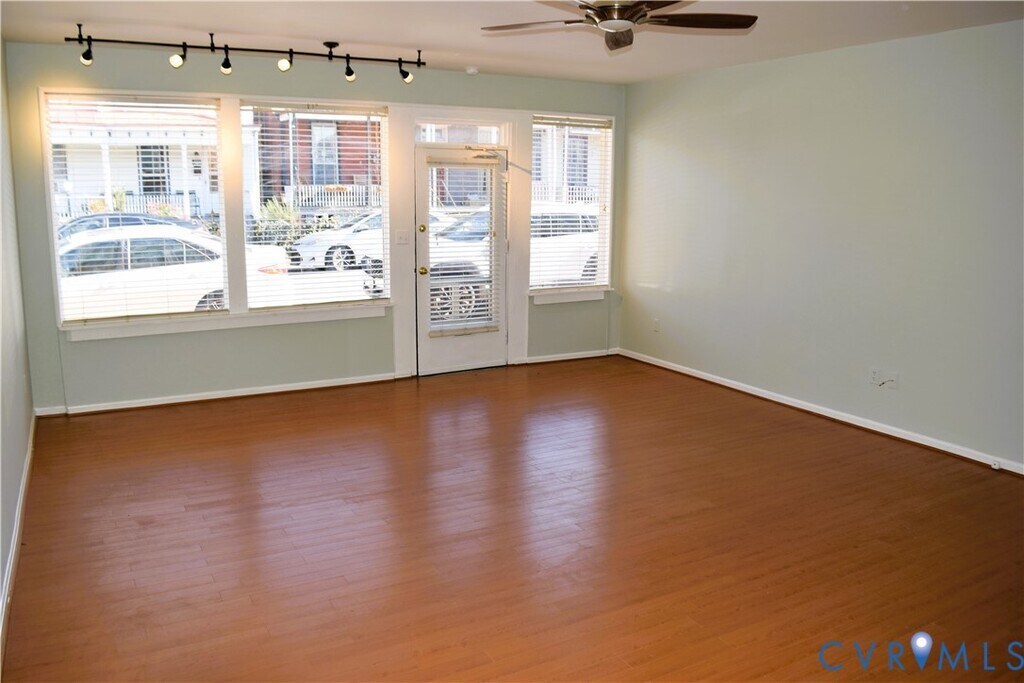 Freshly painted studio ground floor,triplex apartment of about 800 sq. ft. or possible storefront or office if an SUP is obtained. New track lighting and ample natural light from charming storefront windows. Flexible floor plan with dividers provided to partition space where you choose. Easy access to full size washer/dryer shared with 2 other units. Located on a great block of Oregon Hill a short walk from VCU and the James Rivere with quick access to Downtown,the Fan,Shockoe Bottom,Browns Island,Belle Island,Altria Theatre,great restaurants and interstates 95/64. Rent INCLUDES ALL UTILTIES. Full size washer/dryr accessible from inside the unit.