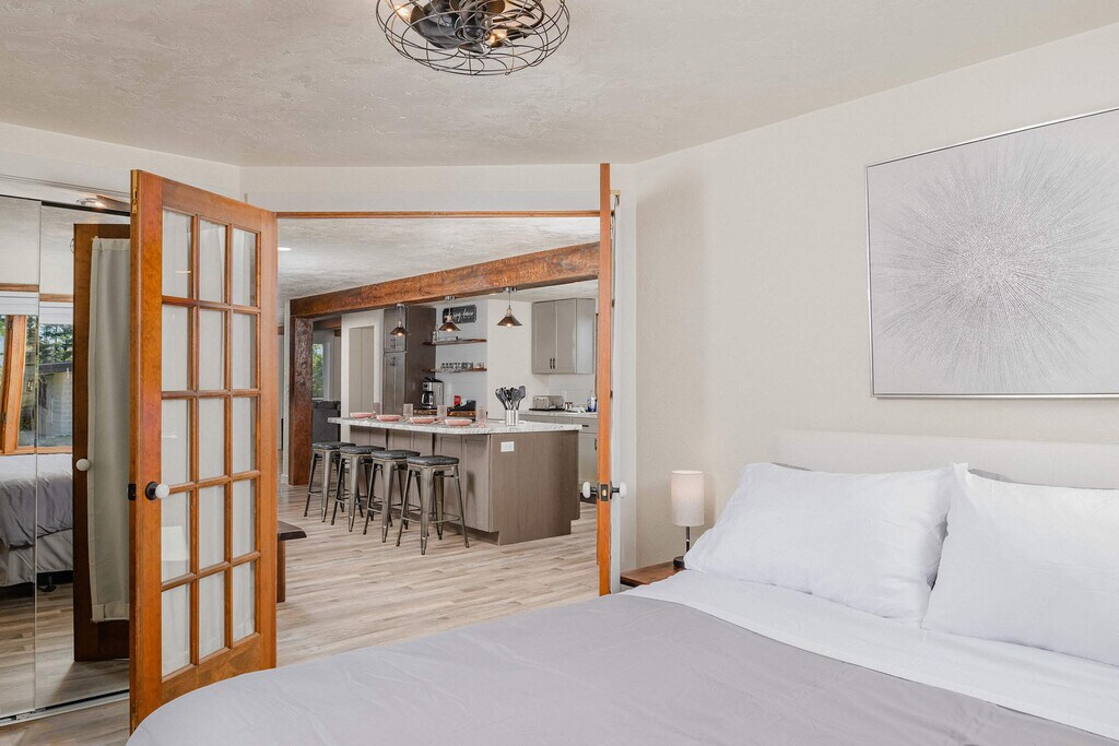 Escape to Fremont, Wisconsin, and feel at home in this newly renovated beautiful 5-bedroom, 3-bathroom vacation rental. Enjoy fishing off the private dock or cruising the Wolf River. Located just steps from downtown, you can easily grab a bite at local restaurants, treat the kids to ice cream, or visit the public library across the street. During the summer months, enjoy a free show from the Webfooters Ski Team, right next door. You'll absolutely love this house with its fully equipped kitchen offering ample counter space, perfect for cooking your favorite meals. The living room, dining room, and counter seating provide plenty of space for relaxation, with additional seating available on the deck. Enjoy free access to the charcoal grill, a private dock for your boat or swimming, and a solo fire-pit. Water enthusiasts will appreciate the water toys, including 2 kayaks and 1 stand-up paddleboard. A pontoon boat is available for rental through the owners. The pontoon boat is available to rent through the owners at $275 per day, with discounts on rentals of 3 or more days. Dogs are welcome with a pet fee, but cats and other pets are not accepted. Dogs must be kept off all furniture and beds, be fully housebroken, and cleaned up after outside. Positioned right at the edge of downtown, this property allows you to walk to all the shops, restaurants, and bars. Watch the Webfooters ski team show from your private deck or join the crowd next door in the bleachers. The area is peaceful and quiet in the evenings, with most properties being owner-occupied. This property features keyless locks for easy access. Smoking of any kind is prohibited in the home, with a $250 fine for violations. Parties are not allowed. Please treat the house with respect and leave it in the same condition you found it. Shoes should be removed upon entering. [SI]