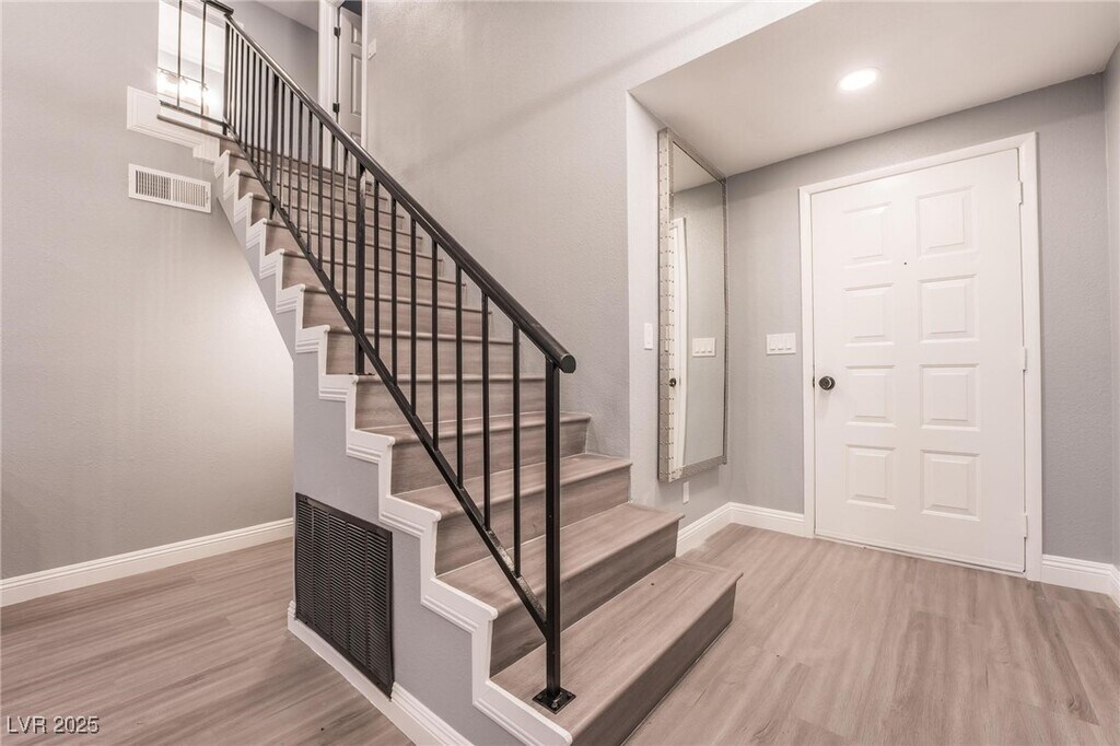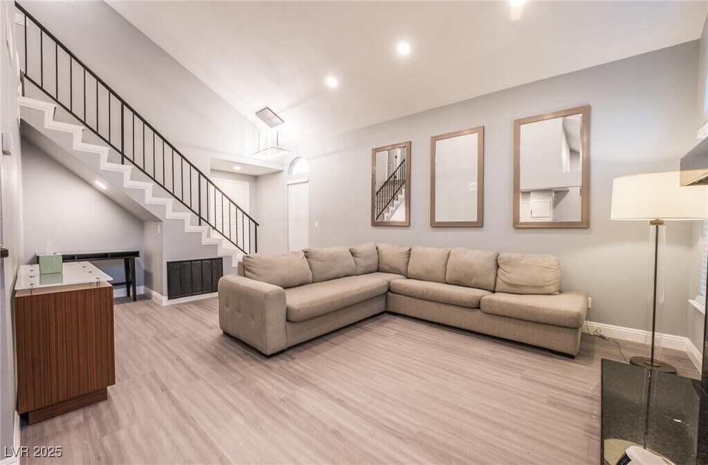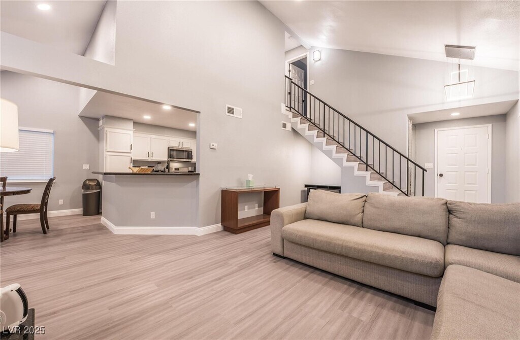Welcome to this beautifully upgraded 3-bedroom, 2.5-bath home nestled in the desirable Lakes community! Located at Shoreheight St, this spacious 1,389 sq ft property offers a bright, open floor plan with soaring ceilings, a grand formal living and dining area, and abundant natural light. The gourmet kitchen features granite countertops, stainless steel appliances, a large island, and a cozy breakfast nook. The inviting family room boasts a fireplace, perfect for relaxing evenings. Upstairs, the primary suite impresses with a spa-like bathroom, dual vanities, and a walk-in closet. Enjoy Las Vegas’ beautiful weather in the private backyard with mature landscaping, a covered patio, and plenty of space for entertaining. Additional highlights include fresh paint, modern fixtures, and a 2-car garage. Conveniently located near Downtown Summerlin, enjoy the parks, shopping, and dining minutes away. Don’t miss this move-in-ready gem in the heart of The Lakes, schedule your private tour today!