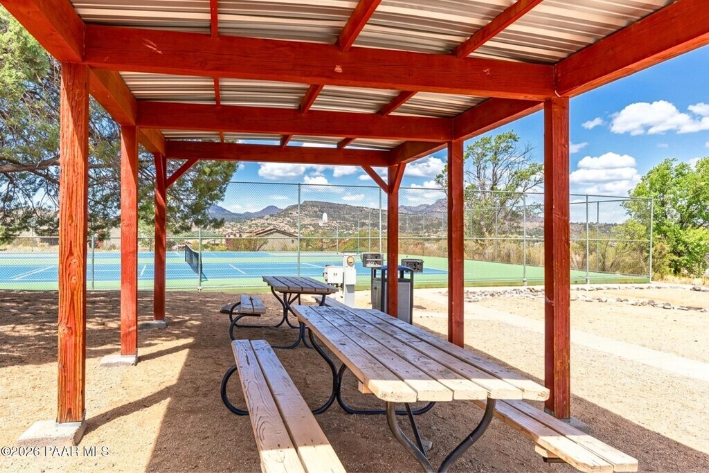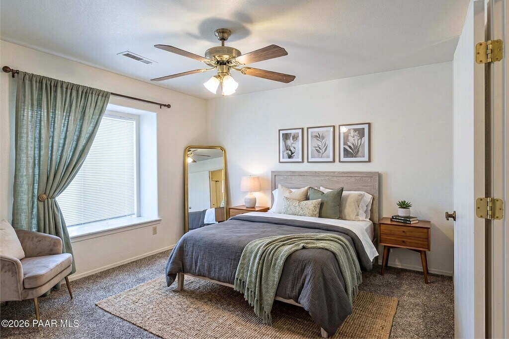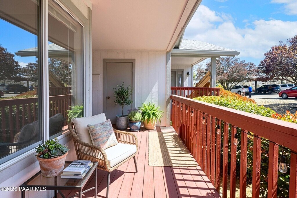 This charming 2-beds,2-baths home in Montana Terraces welcomes you with an open,airy layout designed for comfortable everyday living. The living room boasts a cozy gas fireplace,creating a warm focal point for cool evenings,while a seamless flow connect the living space to the kitchen and dining area. Durable vinyl and tile flooring grace the main living areas,with soft carpeting in the bedrooms for added comfort.The well-proportioned kitchen balances style and function with a tasteful mix of white and black appliances,ample cabinetry,a pantry for extra storage,and a convenient breakfast bar. Step outside to the deck -- an ideal spot for morning coffee or alfresco dinners,where fresh air and neighborhood views set the scene for relaxed outdoor living.The primary suite is a private sanctuary featuring a walk-in closet and an ensuite bath with a walk-in shower with glass sliding doors. The second bed is generously sized and served by its own full bath,making this layout practical for guests or a home office. A dedicated laundry area comes complete with a stackable washer and dryer,and parking is simple with a covered carport plus an additional uncovered space.Set in a welcoming community,this home offers easy access to scenic walking and jogging trails,neighborhood tennis courts,and public recreation routes for hiking and paddle sports. Everyday conveniences are close by,including shopping,dining options,medical services,and a variety of parks and lakes,with Prescott's historic downtown and its restaurants and shops just a short drive away. Sorry NO PETS allowed!*Please note: this home is unfurnished.**Photos may include virtual staging to illustrate potential room use.*