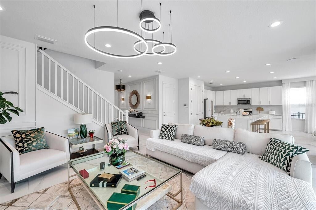 Welcome to the former MODEL HOME by GL HOMES— a beautifully appointed 3-bedroom,3-bathroom home plus an OFFICE and a FLEX ROOM located in the highly desirable Winding Ridge community with NO CDD fees. Boasting an open split floor plan with nearly 2,600 sq ft of living space,this tastefully designed move-in ready home features a modern kitchen with quartz countertops and stainless steel appliances,a spacious primary suite with dual vanities and soaking tub,and a versatile bonus/flex room. The owners upgraded the NEW TILE throughout the first floor and renovated the bathroom to the luxury spa like escapes. All light fixtures in the house have been upgraded as well. The outside area is extremely private on the oversized lot backing to the wood preserves. Indulge in LUXURY at the Resort-Style Clubhouse,where every detail enhances your lifestyle. Outdoor amenities feature a covered patio overlooking the pool,a wet play activity center,Pickleball and Tennis courts,a full basketball court,a shaded playground,an open playfield,and a party pavilion. Indoors,discover a social hall,catering kitchen,indoor sports complex,game room,and a multi-purpose room for fitness classes,all complemented by a fully equipped fitness center. Enhancing your experience is a Full-Time Party Coordinator who organizes club activities and events. The Winding Ridge community offers a GATED,maintenance-free lifestyle with the HOA FEE covering LAWN MAINTENANCE,landscape maintenance,fertilization,mulching,and exterior pest control. Your new home is conveniently located just minutes from Wesley Chapel’s Top-Rated Schools,near I75 on SR56,Wire-Grass Mall,Tampa Premium Outlets,Hospitals,Restaurants,and more. This is your gateway to a vibrant and convenient lifestyle. With over $80,000 in UPGRADES,this home is a true stunner. Come to see it today! The application fee is $45 MLS# TB8432009
