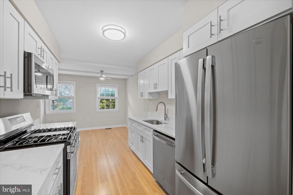 If you’ve been hoping to land a rental that doesn’t feel like a compromise, welcome to your new favorite place. Tucked at the end of a peaceful no-through street in one of Fairfax’s most beloved neighborhoods, this newly refreshed townhome checks all the boxes, plus a few you didn’t expect. Here’s what makes it special: 3 levels of stylish, flexible living space with updates throughout. The main level greets you with beautifully refinished hardwood floors, fresh neutral paint, and new ceiling fans for year-round comfort. The layout flows from a bright living area to a spacious eat-in kitchen, where brand new cabinets, appliances, and plenty of room to gather or unwind make daily life easier and better. Upstairs, you’ll find three natural light-filled bedrooms all with hardwood floors and an owner’s suite with not one, not two, but three closets (including a walk-in with a laundry chute). The en-suite bath features updated fixtures, while the hall bath has been tastefully refreshed to match. Every room is enhanced by new blinds and updated fixtures, giving the entire upstairs a crisp, polished feel. Downstairs, the walk-out lower level features new luxury vinyl plank flooring, an updated half bath, and a spacious laundry area with new washer/dryer, utility sink, and plenty of room for storage or a workbench. Whether you want quiet nights in or space to entertain, the outdoor area is a hidden gem—fully fenced, low maintenance, and ready for container gardening, a hammock, or an evening with friends. And the location? Just blocks from three parks and tucked into a network of serene trails that make it easy to connect with nature, decompress after work, or get in your steps. You're also under a mile from Mosby Woods Pool, and moments from restaurants, shopping, and local favorites like downtown Fairfax’s festivals, parades, and fireworks. Every inch feels intentional and move-in ready, with thoughtful updates that make day-to-day living easier and more enjoyable. This isn’t just a rental. It’s a place to land, to breathe, and to truly enjoy where you live.