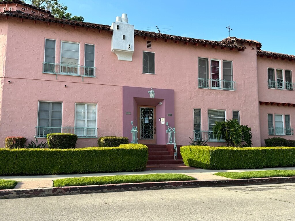 Restored vintage upper unit in a beautiful 10 unit Spanish Property in the historical Leimert Park. Vintage artsy unit is like a home with separate living room and dining room. The unit has an upstairs hideaway private bonus room perfect for an office, creative space or even a game room. Historical lavender and black tile bathroom with tub and shower. Vintage kitchen with a splash of charm. Very spacious with french style windows, and so much more. Brand new shared laundry Live in a piece of history at this exquisite 10-unit pink apartment building, designated as a historical landmark. This property offers a rare opportunity to inhabit a beautifully restored residence, featuring original hardwood floors and classic tile that have been carefully maintained. The restoration process has included upscale, modern updates to the kitchens and baths, designed to coexist with and elevate the building's historic charm. Residents can enjoy a high level of privacy and security thanks to...
