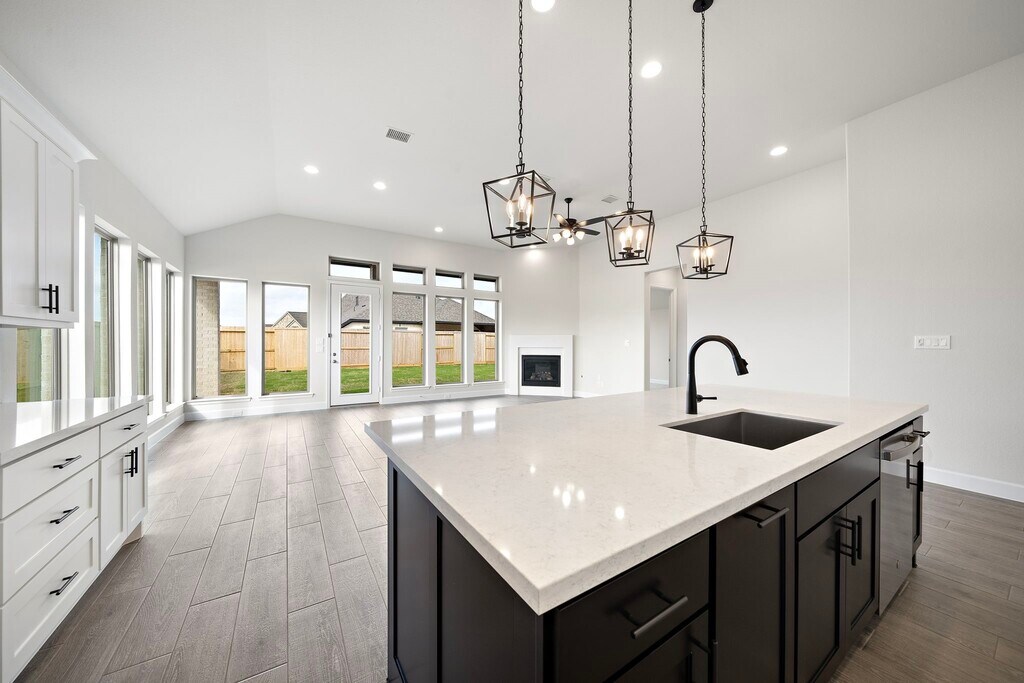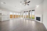 Discover elegant,convenient living in this exquisite 1-story,4-bed,3-bath home with a 3-car garage in sought-after Jordan Ranch. A grand 8-foot decorative glass door and a spectacular 13-foot entry ceiling set a luxurious tone. The versatile home office (with French doors) is located up front. The open-concept family room features a wall of windows and a corner fireplace,flowing seamlessly into the dining area. The chef's island kitchen is a dream: granite counters,shaker-style 42" cabinets,and pendant lighting. The secluded Primary Suite is a true retreat with a double-door bath entry,dual vanities,a separate glass shower,garden tub,and two walk-in closets. The flexible plan includes three secondary bedrooms (all with walk-in closets),two full baths,and a practical mudroom. Enjoy outdoor moments on the large covered 25'x8' patio. Zoned to Lamar ISD. Residents have access to amazing amenities,including a pool,Lazy River,and fitness center. MLS# 63401637