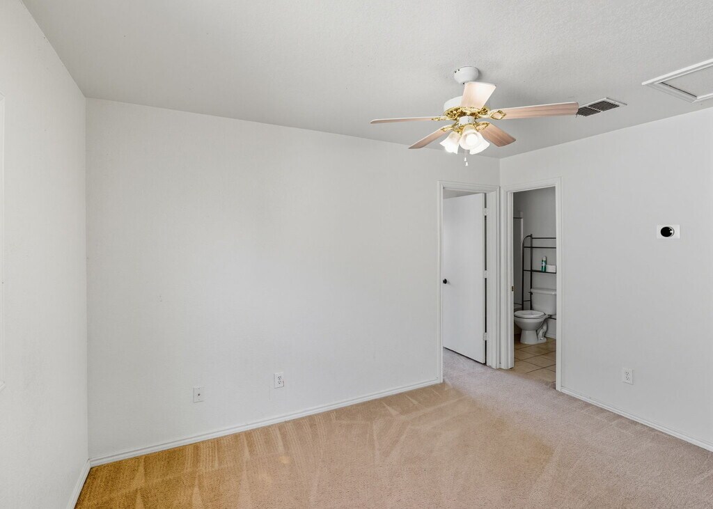Stylish 3 bedroom, 2.5 bath property in New Braunfels.** Home includes incredible value with a **washer, dryer, refrigerator, shed, and a covered backyard with a dog run.** All bedrooms are upstairs, featuring a spacious primary suite with a walk-in closet and a bath with a separate tub and shower, plus a versatile landing area. Check out the 3D tour! Inside, tile, laminate, and carpet create a clean, functional layout. Conveniently located just 0.7 miles from Oak Creek Elementary and minutes from shopping, dining, and highway access, this home offers everyday ease in a great location. **Come tour today!**