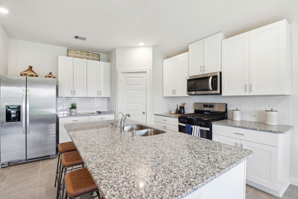 Come be the first to live in the Meritage home model. Designer white cabinets,huge granite island,contemporary tile flooring and grey tone carpet. Blind coverings on all the windows,epoxy garage floor,washer,dryer and refrigerator included. The kids will love the community playground and splashpad right next door or head to the nearby aquatic center for a family fun day. Looking for an energy-efficient home that will keep your budget in mind? This home comes standard with features that go beyond helping you save on utility bills ESPECIALLY VERY LOW ELECTRICITY bills !!!! This gorgeous brand-new rental is the just what you are looking for as the ideal stop over to fit your family's needs as well as your WANTS!! MLS# 77322564