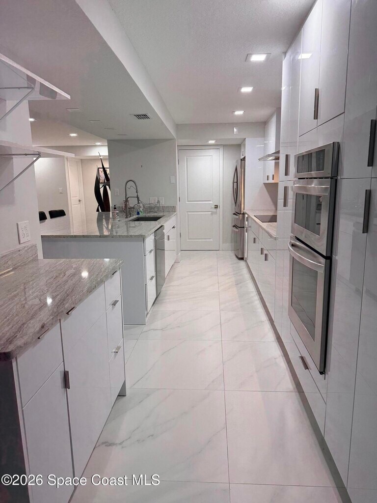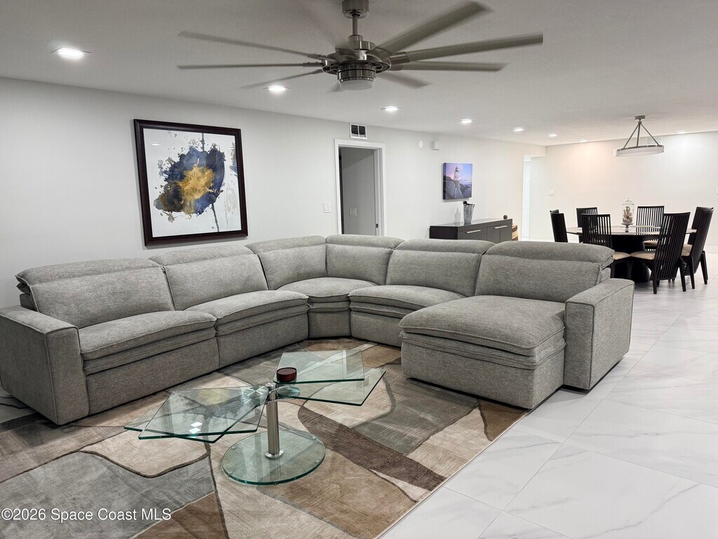 Don't miss this iconic Constellation Condo in Cocoa Beach! This stunning furnished home offers a rare combination of expansive ocean views and breathtaking river vistas--perfect for enjoying both sunrise over the water and spectacular sunset skies each evening. Fully renovated with a sleek,modern design,this home features an impeccable kitchen with crisp white cabinetry,gorgeous granite countertops,stainless steel appliances,an oversized island,and a custom marble backsplash. The open-concept floor plan maximizes natural light and showcases uninterrupted ocean views,complemented by elegant marble tile flooring throughout. The oceanfront primary suite is a private retreat,complete with balcony access and panoramic water views. The spa-inspired en-suite bath boasts a large walk-in shower,whirlpool soaking tub,and double-sink vanity with designer finishes. Residents enjoy private beach access,heated pool,sauna and secure lobby. This is coastal Florida living at its finest! MLS # 1070208