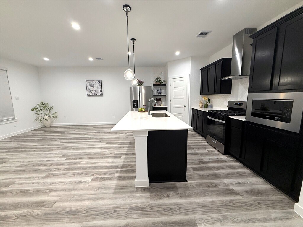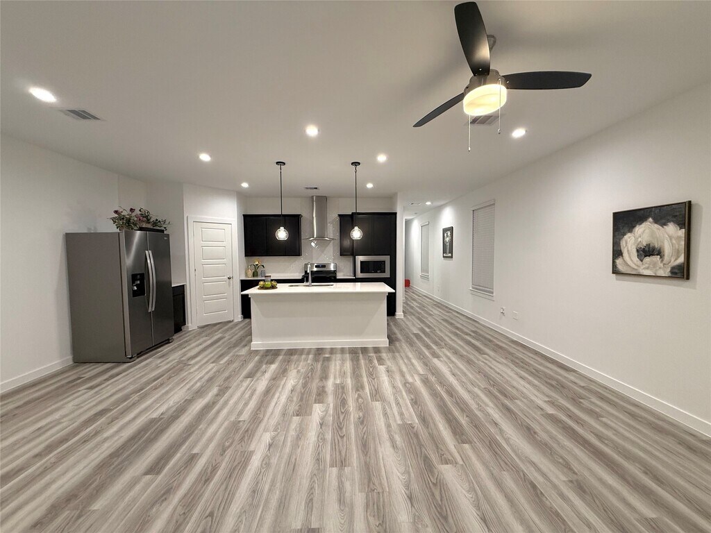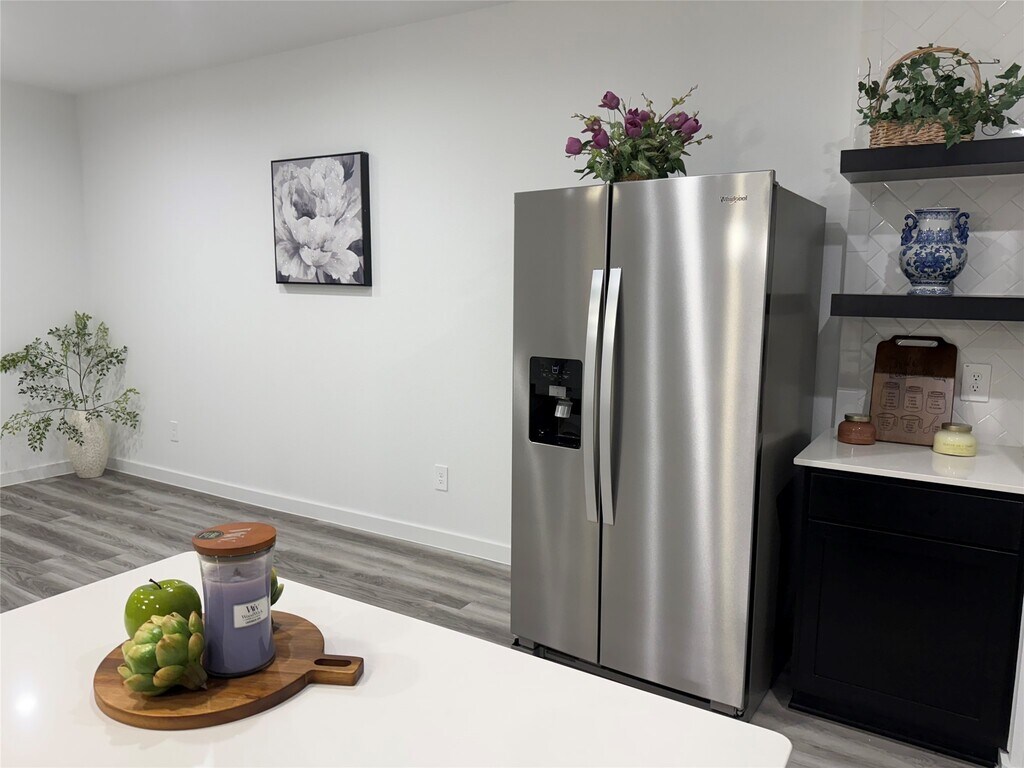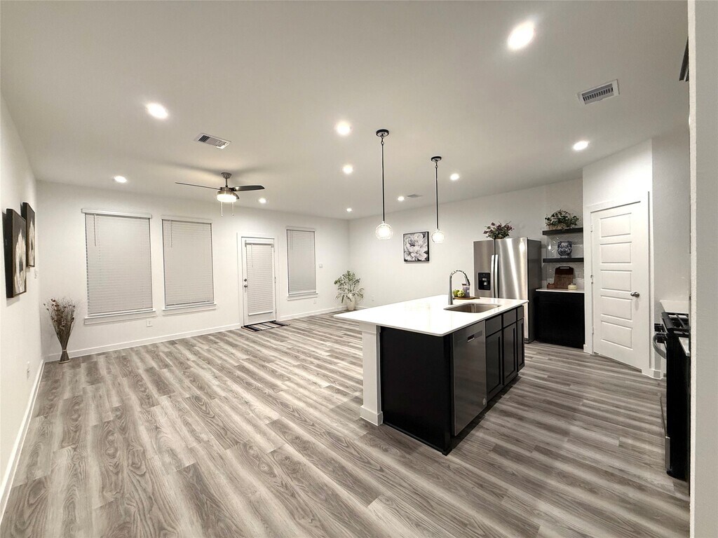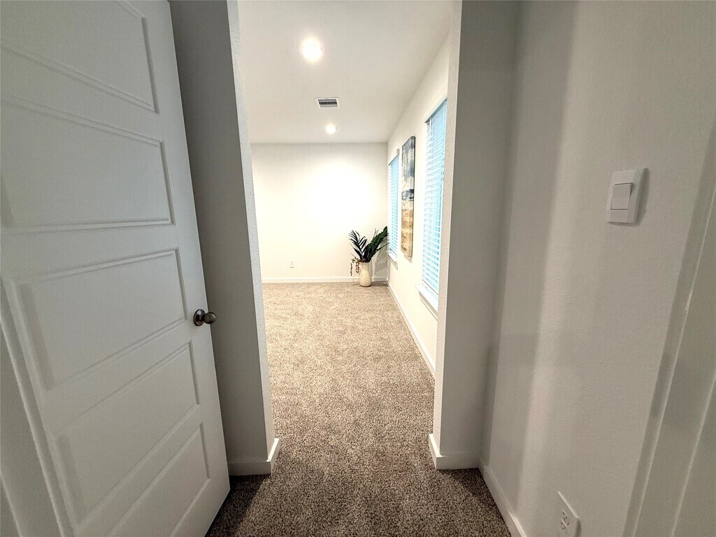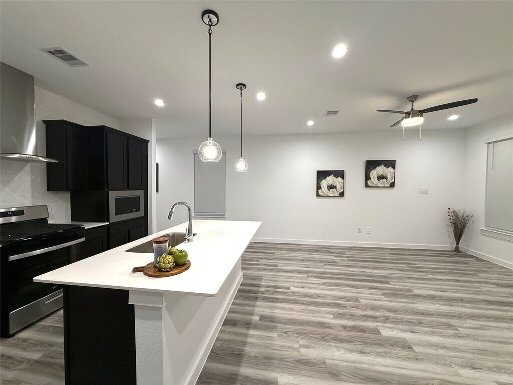A 2 story Villa (Birch floorplan) by DR Horton with 3 bedrooms,2.5 bathrooms. Easy access to the highway 288 and Beltway 8. Close (13 minutes) to Medical Center. 19 minutes to Downtown Houston. The house features Island Kitchen with 36" black shaker cabinets. White Silestone countertops with undermount sink,stainless steel gas range,dishwasher,built-in-microwave all by Whirlpool with stainless-steel vent hood. Luxury vinyl planks downstairs and wet areas,Mohawk carpet in all bedrooms. Walk-in shower and dual sinks in primary bath. Wood shelving in all closets,pantry and utility room. EXTRA SIZED back yard with NO NEIGHBORES. Tankless gas water heater and covered patio with storage. Front yard is maintained by HOA. The only thing this home is missing is you. MLS# 30957679