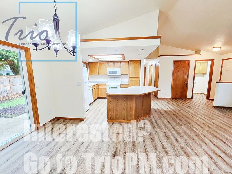 Welcome to the North Gilham Gem! This charming 3-bedroom, 2-bathroom house is located in the desirable neighborhood of Eugene, OR. With its spacious layout and modern design, this home offers a comfortable and convenient living experience. The open concept kitchen is perfect for entertaining guests or enjoying family meals, while the large bedrooms provide ample space for relaxation and privacy. The vinyl flooring in the house adds a touch of elegance and is easy to maintain. You'll also appreciate the convenience of the washer/dryer hookups, making laundry a breeze. The 2-car garage offers plenty of space for parking and storage. Step outside and be greeted by the lovely landscaping and a private fenced yard, perfect for outdoor activities or simply enjoying the fresh air. This North Gilham Gem is the perfect place to call home. Don't miss out on this opportunity to live in one of Eugene's most sought-after neighborhoods. VIEWING INSTRUCTIONS: Go to to verify the listing and schedule a showing at your convenience! Or call EXT 1 SMOKING: No smoking entire premises PETS: See pet criteria. UTILITIES: Tenant responsible for all utilities and garbage service GARAGE/PARKING: 2 car garage Property does not come with garage door remotes. GUARANTOR/CO-SIGNER: Not accepted LAUNDRY: Hook ups YARD CARE: Tenant to maintain landscaping HOMEOWNER’S ASSOCIATION (HOA): No TERM: 1-year Lease SCREENING CRITERIA: Answers to your screening fee and application questions are found on the website at . No more wasting time waiting for a phone call back. Click the link to our website to review the screening criteria and apply online. Screening criteria is at the beginning of the application. HOW TO APPLY: 1. View the property interior and exterior via self-showing options above 2. Apply online Search our Rentals, Apply Now 3. Pay non-refundable screening fee online Trio Property Management Inc. 1000 Willagillespie Road Ste 206 Eugene, OR 97401 All information is deemed reliable but not guaranteed and is subject to change. Applicant to verify all information. Eugene properties impacted by the Eugene ordinances: Applications will be accepted upon posting of this listing until the property is rented. If you are an applicant with limited English proficiency, you are entitled to submit a request for an additional 24 hours to provide you with more time to seek language assistance services for the purpose of complying with the Housing Provider’s screening and application requirements. Amenities: Private fenced yard, 2 car garage, washer/dryer hookups, Lovely landscaping, Large bedrooms, Open concept kitchen, Vinyl flooring