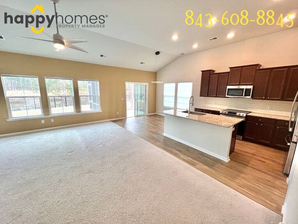 Available 1/14! This bright open floor plan features 3 bedrooms and 2 full baths. As you walk into the open concept kitchen you flow directly into the family room and dining area - perfect for family time as well as entertaining. Walking down the hallway are the 2 secondary bedrooms and a full bath. The primary bedroom is tucked away in the rear of the home on the opposite side for added privacy. It includes a spa inspired master bath and walk in closet. This home has a 2 car garage and washer & dryer included! This home is completely surrounded by a scenic 63 acre lake perfect for kayaking, natural lush low-country landscaping and featuring our Brand New LAKE FRONT AMENITY CENTER! Check out our walkthrough video tour: Lease terms are: 1-year lease with the option to renew. Pets are negotiable at this property. Please speak to the property manager during your showing. If the pet is approved a completed Pet Profile is required from during the application process. There is a $250 non-refundable Pet Fee, per pet at lease signing. Please visit Happy Homes pet policy listed on our website under the Applicants drop-down menu for breed restrictions. Property must be viewed in person prior to submitting an application. Please go to to schedule a showing or call us at to schedule a showing using our automated scheduling system. If your application is approved please accept this notice that you will be charged a $175 Lease Administration Fee to cover all administrative costs for getting you set up to move into your new home. Application Fees are non-refundable. All Happy Homes residents are enrolled in the Resident Benefits Package (RBP) for $50/month which includes liability insurance, credit building to help boost the resident’s credit score with timely rent payments, up to $1M Identity Theft Protection, HVAC air filter delivery (for applicable properties), our best-in-class resident rewards program, on-demand pest control, and much more! More details upon application. This property is managed by Happy Homes Property Manager, LLC.