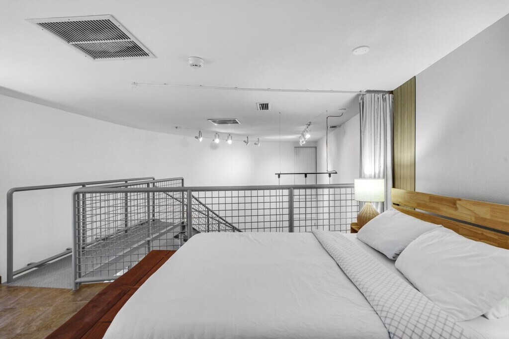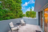 Escape to this architecturally striking, split-level 3-bedroom, 2-bath duplex just north of the University of Miami campus and feel at home. Blending gallery-style design with warm, natural textures, this retreat is perfect for families, friends, or visiting scholars seeking both style and convenience. The main living level features an open-concept loft with a dramatic spiral staircase, soaring ceilings, and contemporary track lighting. Relax in the comfortable seating area with a plush sectional, marble-topped coffee table, and 55" smart TV. The kitchen is complete with a butcher-block island, stainless fridge, induction cooktop, dishwasher, microwave, and stocked coffee bar. There's also a breakfast bar and dining nook for casual bites or game-night gatherings. Enjoy the private patio with plush lounge chairs and a coffee table, a hot tub hidden among lush foliage, and a rooftop deck with panoramic treetop views. Amenities include high-speed Wi-Fi, smart TVs in the living area and primary suite, central air conditioning, ceiling fans throughout, and an in-unit washer and dryer. Furniture for the rooftop deck is provided upon request. Located just north of the University of Miami campus, this apartment offers both style and convenience. Self check-in is enabled with a smart lock for flexible arrival. Linens, towels, toiletries, hangers, an iron/ironing board, and a hair dryer are provided. The guest bedroom on the ground floor offers a flexible layout for remote work with a desk set-up. Kindly note there is a required security deposit for this unit. The partner will reach out to you to collect it and handle it offline upon your reservation. Registration Number: U [SI]