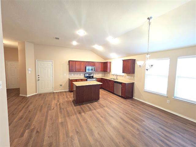 ABSOLUTELY GORGEOUS 4 bedroom home in master planned community. BRAND NEW Luxury Vinyl Plank Flooring in all living and dining areas. BRAND NEW Plumbing and Electric Fixtures throughout. This Mira Lagos Beauty features a large kitchen which overlooks the breakfest nook and family room. The kitchen features stainless steel appliances, built in microwave, GORGEOUS granite countertops, HUGE pantry, and large island. The family room has vaulted ceilings and wood burning fireplace. The Luxurious master suite is oversized and features a vaulted ceiling, elegant master bath with dual sinks, garden tub, and separate shower. The backyard has a large covered patio and nice sized yard with full automatic sprinkler system. Walk to schools, community pool, and fitness center. Mansfield ISD! Don't miss your chance to live the Mira Lagos lifestyle. HURRY!