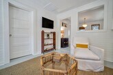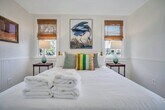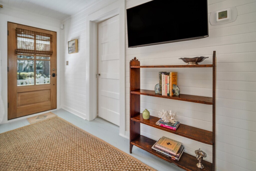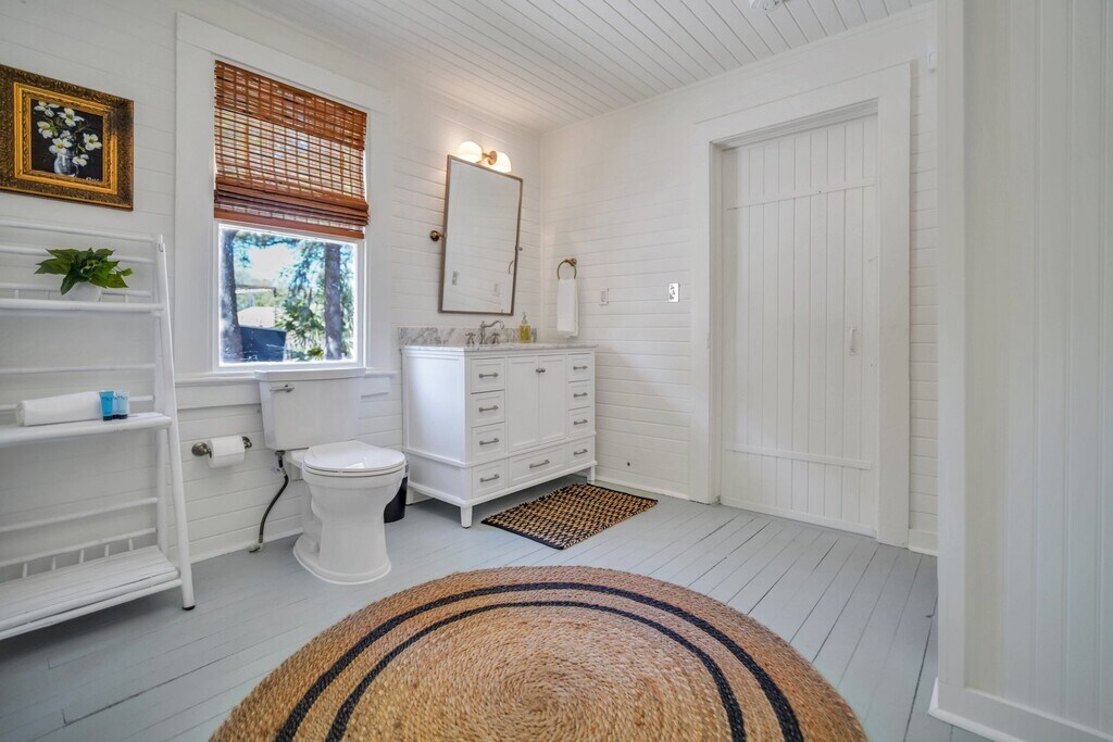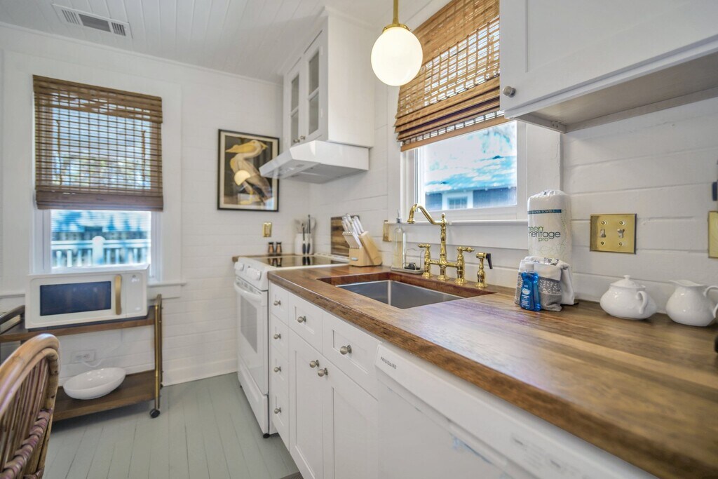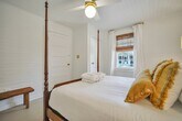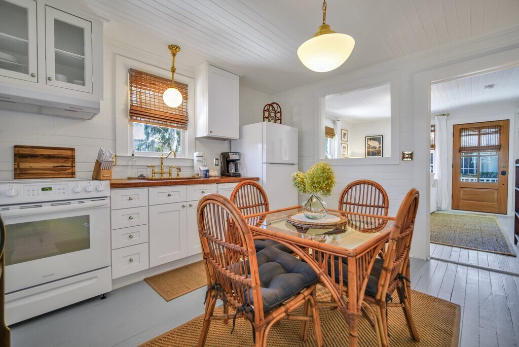 This home is available for guests looking for a 31+ night rental. Specific pricing is available upon request. Monthly rates range from $2500-$3000/month and final rates are based on season and length of stay. Fully furnished- utilities/internet included Fishermen's Cottage is an adorned family heirloom built in 1950 for a local market owner in Thunderbolt Island. Recently restored and designed by the market owner's loved ones, life has been brought back to this cozy, stylish, home to share with our Lucky Guests! You'll find yourself within walking distance to the Wilmington Island River to watch unforgettable sunsets, outstanding restaurants, and much more. From the eye-catching curb appeal, to the quintessential front porch, this quaint and charming cottage stands out amongst the rest. As every true southerner knows, the front porch of a home is made for sipping sweet tea, but you're welcome to enjoy a morning cup of joe or evening glass of wine while feeling the breeze of the Wilmington Island River. Stepping inside, you'll be transported back to 1950 but pleasantly surprised by the sophisticated and thoughtful appointments, furnishings and fixtures. The cozy living room is bright and airy, with an ample amount of seating for everyone to unwind after a long day of exploration together. Beyond the living room, you'll find an alluring galley kitchen, with all of the modern day appliances and amenities one could ask for! Fitted with beautiful butcher block countertops and stainless steel appliances, you'll also find that the cabinets are stocked with everything you'll need for a home-cooked meal. Whether you need a space to get some work done, or share an intimate meal with those in your party, the adorable bistro table is set for four guests. Both bedrooms are located at opposite ends of the home, yet each have access to the sizable bathroom. The first bedroom offers a antique, four-post queen bed and overlooks the treelined street. At the back of the home, with access to the rear deck, the second bedroom features a queen size bed and calming tones to ensure a peaceful nights rest. Emphasizing on sizable, the shared bathroom offers an ample amount of space, an original claw-foot tub, and a large marble top vanity with plenty of storage. Just out back, guests will find a large deck just off of the kitchen, perfect for Spring and Summer evenings beneath the moonlit sky. The vast backyard is completely fenced in, which is ideal for pet owners! Sleeping Configuration: Bedroom 1: Queen Bed Bedroom 2: Queen Bed Parking: Three Private Parking Spaces Available We can welcome your dog companions at this pet friendly home, but ask that you find other arrangements for cats, birds, and other furry friends. There is a $250 pet fee (non-refundable) with a 35 lb. maximum weight limit per dog and a limit of 2 dogs per reservation. Some homes may allow larger dogs, please inquire for more information.