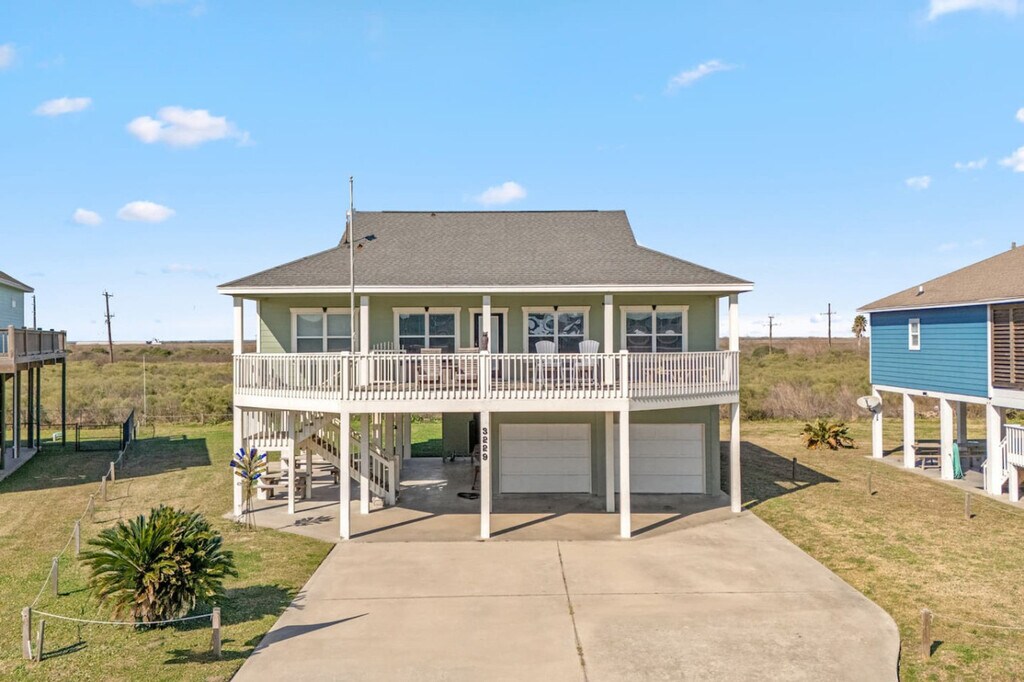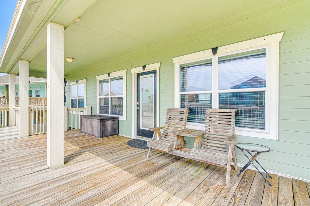 The advertised rate of $2,097/month is the lowest available price, based on a 1 month(s) stay with a move-in date of April 3, 2026. Rates vary depending on the duration of stay, season, and other parameters. For exact pricing and additional pricing components, please visit our website and enter your desired move-in and move-out dates. The rate is applicable when billed upfront; it can be higher if billed in multiple payments. Feel at home in this 3-bedroom beach house in the heart of Crystal Beach, on the Bolivar Peninsula. The house sits in a quiet pocket near the center of Crystal Beach, where you can hear the Gulf and the wind moving through the decks. Inside, the home is built for people to be together. The living room is open and bright and features an electric fireplace. The kitchen opens to the living room. Outside, there is space to sit, eat, and watch the light change on the partially covered deck. Below, you’ll find outdoor seating, a dining area, and a grill. Down in the garage hangout, there is a propane fire pit and chairs. The streets are simple and low, with houses on pilings and the Gulf out in front of it all. In the morning, you can be on the sand in a short walk or a quick golf cart ride, driving along the wide, open beach the peninsula is known for. Around you is an easy-going beach town where families set up canopies on the shore and stay all day. Golf carts roll along the back roads and on most stretches of beach where they’re allowed, and there are simple places to eat, pick up bait, or grab ice and groceries just a short drive away. The house sleeps 8 people. Any extra guests must be cleared before booking, and only registered guests may stay. Visitors need approval first. Do not park under the house; use the driveway only and take care not to hit the pilings. Keep noise down at night so neighbors can rest. Do not move the furniture, inside or out, including chairs, picnic tables, and anything set in place. Grill only downstairs on the patio, never on the deck, and please clean the grill after you use it. Rinse sand off with the shower downstairs and leave sandy shoes at the door or on the deck by the entrance. Do not flush feminine products or anything that could harm the septic system. Do not pour grease down any drain. Lock all doors when you leave the house. [SI]