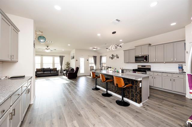 This beautiful home features four spacious bedrooms and excellent flooring throughout. The kitchen is designed with a tasteful backsplash, elegant gray cabinetry, an open floor plan, a breakfast bar area, and recessed lighting, making it both stylish and functional. The living room showcases arched walkways, abundant natural light, recessed lighting, light wood-style floors, and a ceiling fan, creating a warm and inviting atmosphere. One of the bedrooms includes light carpet, a vaulted ceiling, a ceiling fan, and a connected bathroom, while the closet offers generous space with soft carpeting. The modern washroom adds a touch of sophistication. At the back of the house, you’ll find a roof with shingles, brick siding, a patio, and a fenced backyard, perfect for relaxation or entertaining. Altogether, this home combines comfort, elegance, and practicality in every detail. Home is available immediately. Pets are welcome and considered case by case ($600 refundable per pet). HOA is paid by owners. Need to bring Washer-Dryer-Refrigerator. No housing vouchers, no section 8. Mention your broker name and number in online application if applicable. Qualifying criteria Deposit determined by Credit Score. $51 per adult application fee.