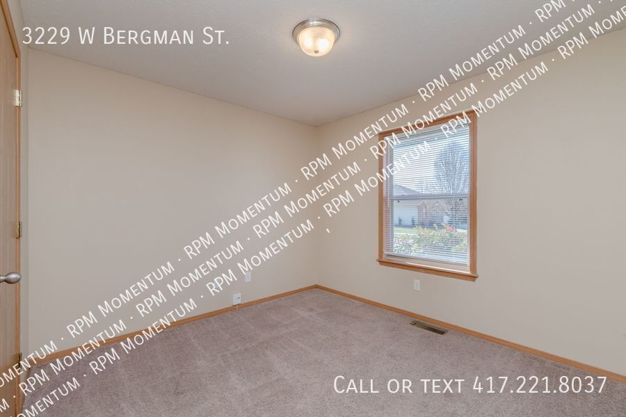 COMING SOON! AVAILABLE JANUARY/FEBRUARY 2026! 3229 W Bergman St, Springfield MO is offered for rent by Real Property Management Momentum. **WE DO NOT POST OUR RENTALS ON CRAIGSLIST OR FB MARKETPLACE - DO NOT INTERACT WITH ANYONE PRETENDING THROUGH THOSE SITES** This beautiful 3 bed, 2 bath home is ready for you!! It includes all appliances pictured (oven/stove, refrigerator, dishwasher) along with, washer and dryer hookups and a 2 car garage. Recently updated flooring, vinyl plank flooring in place of carpet. An open floor plan welcomes you when you walk through the front door creating a living space convenient for entertaining. A nice large back patio is just outside the living room, perfect for relaxing after a day at work. There is plenty of room on the patio for the perfect vibe at night. Everything about this cute and cozy home is ready for you to rent immediately!! No Cats! Rent: $1250 Deposit: $1250 Admin Fee: $199 App Fee: $59 per applicant over the age of 18 RPM Momentum uses a platform called PetScreening to complete the screening and approval process for any pets that will be living at the property. Individuals without pets must complete the online affidavit, while Pet/Animal Owners should gather current vaccination records, veterinarian information and snapshots of their pet/animal. You will find the link to complete your online profile in the application process. Household pets will be charged a fee of $30 for the first pet, which will not only complete the screening process but create a digital passport for your animal for your personal use.” (THIS IS NOT THE MONTHLY PET FEE-THESE FEES ARE STRICTLY FOR YOUR PETS SCREENING & APPROVAL PROCESS-CALL THE OFFICE FOR INITIAL AND MONTHLY PET FEES) Resident Benefit Package: $40/month fee includes access to online tenant portal, on time rent payment credit reporting, home buyers assistance & more! (Charged per household, not per tenant. Mandatory on all leases). Website for Apps: Click HERE - to schedule a showing or apply! All showings are self showings!! Once you've scheduled, you will receive confirmation emails and texts. Please be sure to respond to them accordingly. Otherwise, your showing will be canceled. At the time of your showing you will receive a text with a link for a code to enter the property. If you are not on the premises of the property, you will not receive a code. Feel free to give us a call if you have any questions . Tenant Is Responsible