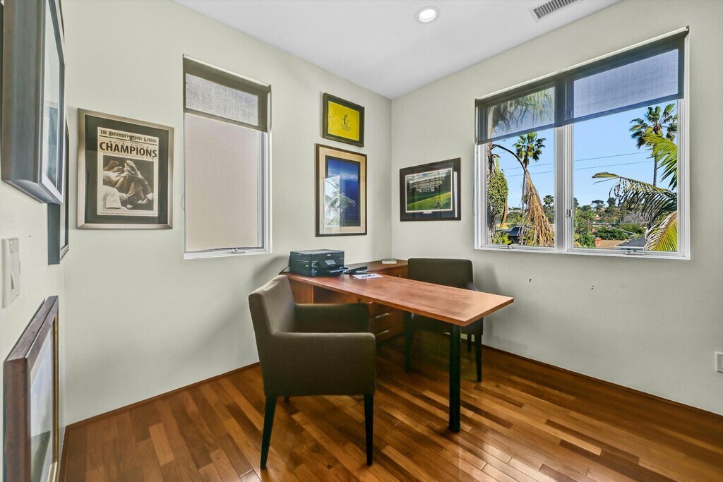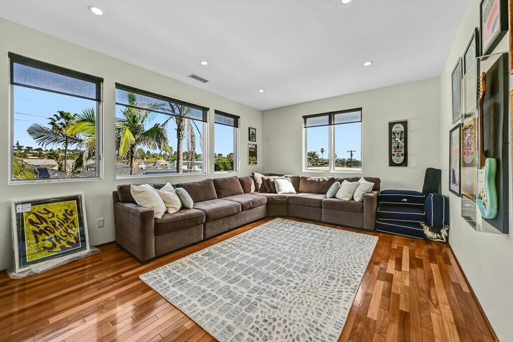Fully furnished coastal retreat on highly desirable Neptune Avenue in Encinitas. Available for 30-day minimum stays or longer, this thoughtfully designed 3-bedroom + office + media room with 3-baths offers approximately 2,600 square feet of light-filled living space with ocean views and refreshing sea breezes. Expansive glass doors and windows create seamless indoor-outdoor flow, with multiple areas to enjoy sunset views, including the main living space, front deck, and private rooftop deck overlooking the Pacific. The upper level features an open-concept great room and chef’s kitchen ideal for gathering and entertaining, while all bedrooms are located downstairs, providing comfort and privacy. Additional amenities include a dedicated office, media room, outdoor shower, grassy backyard area, and two-car garage. Conveniently located just moments from beach access at Stone Steps and near local shops and restaurants, this property offers an exceptional coastal lifestyle experience. Offered fully furnished and move-in ready.