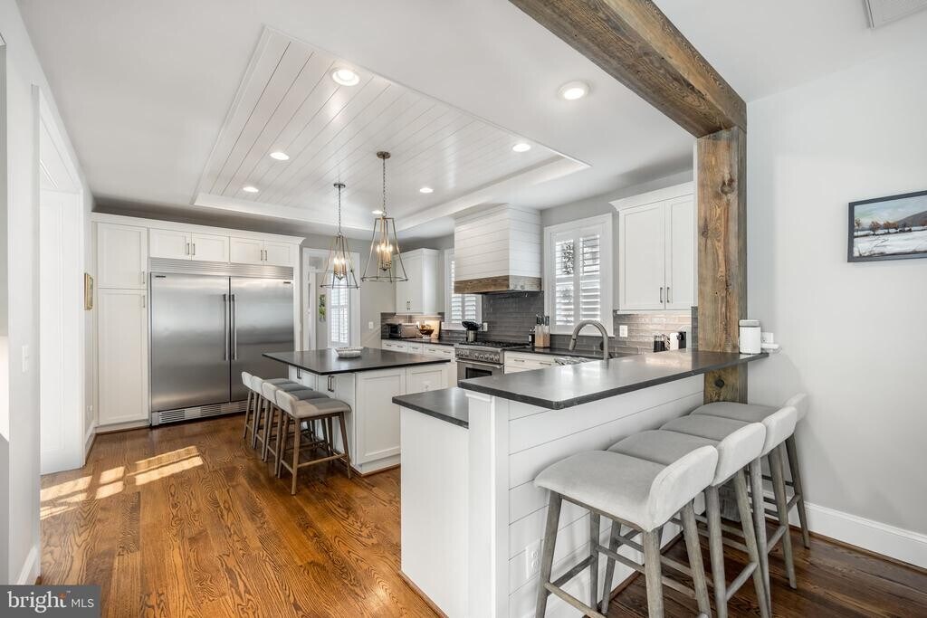 Falls Church City! This stunning modern farmhouse was built in 2019 by Cottage Street Homes and is nestled in the heart of Falls Church City. Sited on over a quarter-acre landscaped lot, this 5 BR/4.5 BA home features captivating custom finishes at every turn, abundant natural light, an inviting front porch and so much more. The main level shines with an open layout. Anchored by a gorgeous chef's kitchen complete with stainless steel appliances, granite counters, a center island, and breakfast bar and opens seamlessly into a warm and inviting living room with a fireplace and exposed wood beams. The main level is rounded out by an elegant dining room with a second fireplace, a sunny mudroom, and a half bath. Upstairs, you will find four generous bedrooms and three baths, including a fabulous ensuite primary featuring spacious walk-in closets and a spa-like bath. Luxury radiates from every room and laundry on the upper level adds everyday convenience. The lower level delivers flex space galore with an expansive recreation room, full bath, bonus room/den, and a fifth bedroom perfect for guests, an office, or whatever suits your lifestyle. Outside, enjoy a lush, professionally landscaped yard and patio perfect for entertaining - the owner will maintain the landscaping, so you can simply enjoy it. An oversized detached two-car garage, makes parking effortless. Near Broad St and Founders Row - minutes to Paragon Theaters, acclaimed restaurants, coffee shops, and boutiques right at your doorstep - this home offers the ultimate in convenient suburban living. Just one mile from the West Falls Church Metro and with easy access to I-66, commuting couldn't be simpler. Don't miss this opportunity to experience luxury living and enjoy everything Falls Church City has to offer - this is more than a home, it's a lifestyle worth staying for. Landlord will consider pets on a case by case basis.