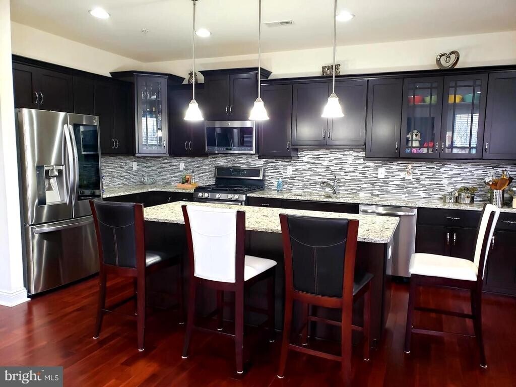 Welcome to this beautifully maintained carriage home in the highly desirable Colebrook community of New Britain Township. Built by WB Homes and located within the award-winning Central Bucks School District, this three-bedroom, two-and-a-half-bath residence offers timeless design, modern comfort, and a fantastic layout for everyday living. The first floor features 9-foot ceilings, open and sun-filled living spaces, and hardwood flooring throughout the dining room, family room, and den. A set of sliding glass doors leads to the rear deck with steps down to the backyard—perfect for outdoor relaxation. The gourmet kitchen serves as the centerpiece of the main level, complete with granite countertops, tile backsplash, an enlarged center island, and stainless steel appliances. A cozy den, powder room, and an attached one-car garage complete the first floor. Upstairs, the primary suite offers upgraded carpeting, walk-in closets, and a luxurious bathroom featuring double vanities, a tiled wall that continues into the beautifully tiled stall shower, plus a soaking tub. Two additional bedrooms with recessed lighting and wall-to-wall carpet share a well-appointed hall bath. The second-floor laundry room with washer and dryer adds everyday convenience. The finished basement provides an impressive extension of the living area with a spacious recreation room and a dedicated media room equipped with projector, screen, and home theater speaker system—just add your sofa to create your own private cinema. Available Jan 15th. Landlord covers the HOA fee. Pet policy available upon request.