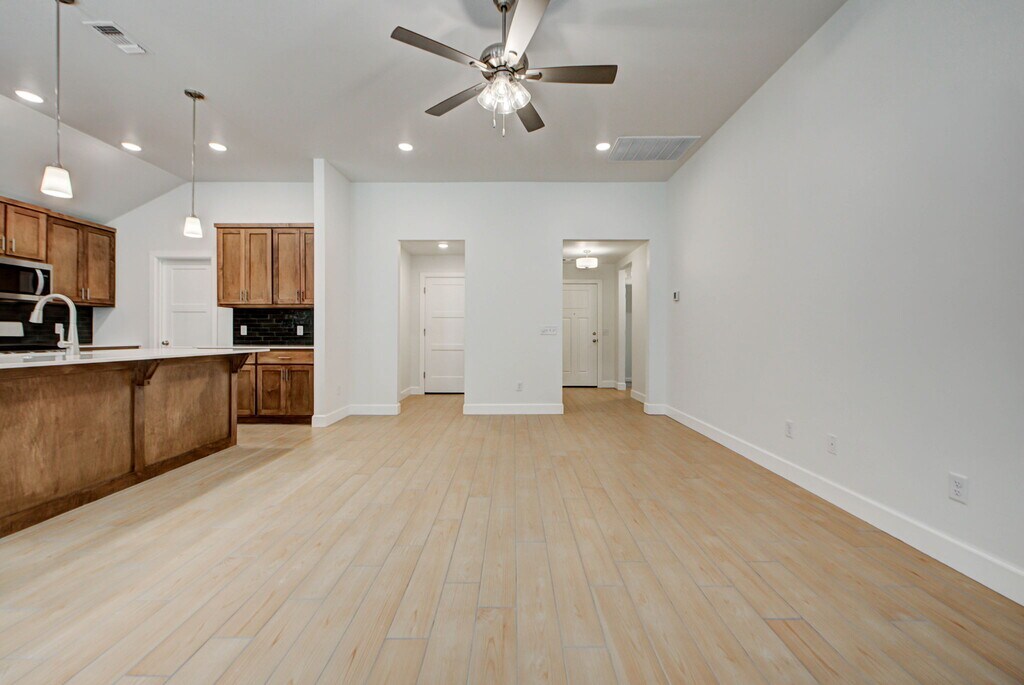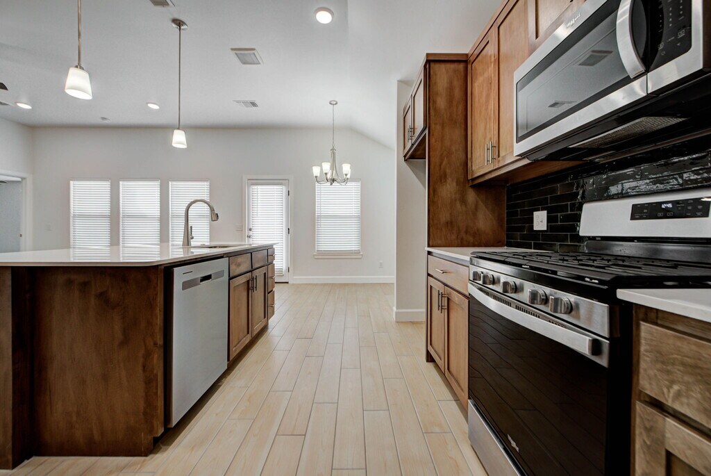 Be the first to live in this stunning newly constructed 3 bedroom, 2 bathroom home offering modern comfort, energy efficient design, and stylish finishes throughout. When you step inside the front door you will discover beautiful, unique flooring that flows through the main living areas, offering a warm, contemporary look while providing exceptional durability and easy maintenance. Stunning countertops make prepping meals enjoyable combined with a stainless steel gas stovetop a pleasure to cook on. Entertaining or relaxing is made easy with a spacious covered porch overlooking the backyard or the welcoming, charming front porch. To make family life even more enjoyable, the neighborhood includes a playground and splash pad for children! Schedule a showing and make this home your own!