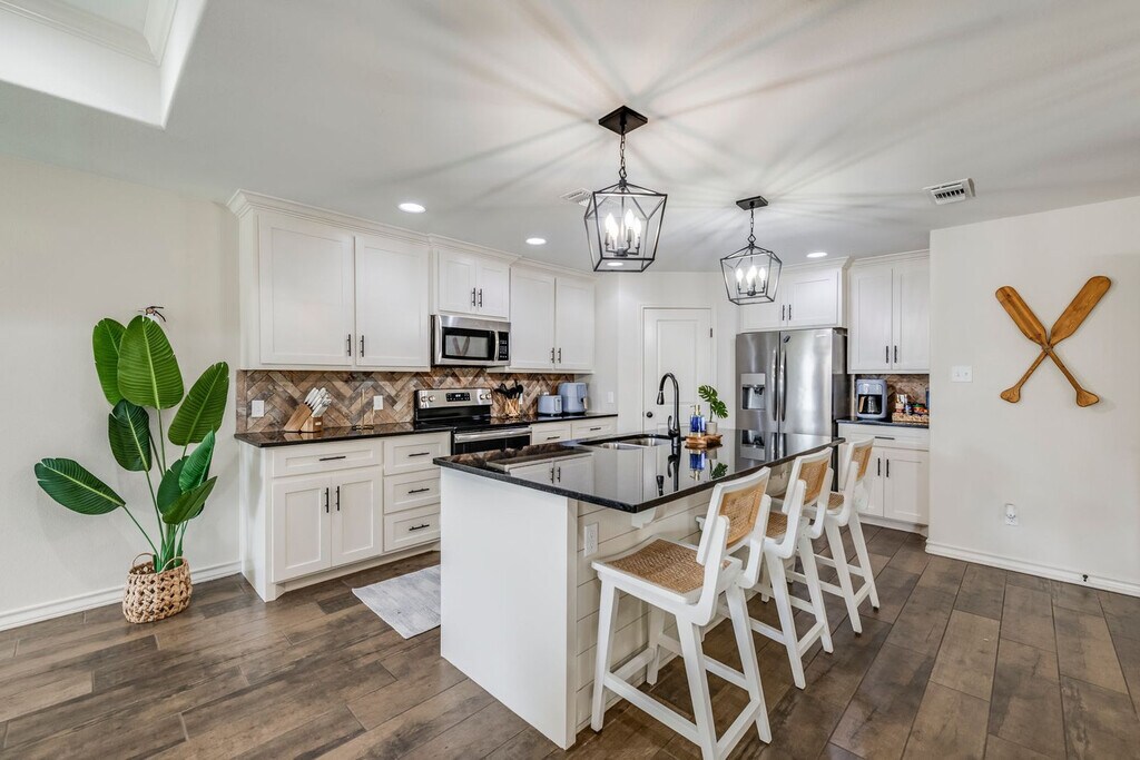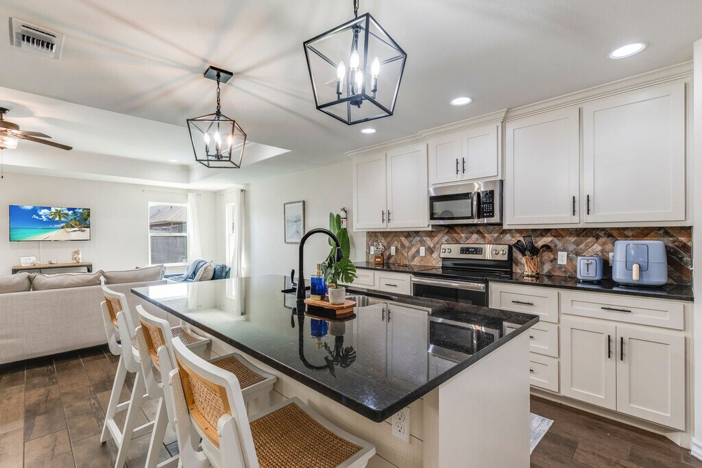 Relax in this 3-bedroom, 2-bathroom home with a private heated pool, perfect for families and long-term stays. Located in a quiet neighborhood near the airport and refineries, it offers easy access to work and leisure. Enjoy a fully stocked kitchen, cozy living spaces, fast Wi-Fi, and extended stay discounts. Unwind by the pool or explore nearby dining and shopping. Welcome to your Corpus Christi retreat! This 3-bedroom, 2-bathroom home is perfect for families, work trips, and extended stays. Centrally located near the airport and refineries, you’ll have easy access to shopping, dining, and local attractions. Plus, enjoy your own private heated pool in a peaceful neighborhood! The living room is spacious and cozy with plush seating, a full-size pullout couch for extra guests, a smart TV for streaming your favorite shows, and bright and airy natural light. The kitchen is fully equipped with stainless steel appliances, a coffee maker, and cookware for all your needs, and a spacious dining area perfect for group meals. The primary bedroom features a king bed, smart TV, and private en-suite, while the second bedroom has a queen bed, and the third bedroom offers 2 twin beds. The living room also includes a full-size pullout couch for extra guests. Bathrooms are fresh and clean, with a primary en-suite featuring a walk-in shower, plush towels, and toiletries, and a shared bathroom with a shower/tub combo. Driveway parking is available for multiple vehicles. Pets are welcome with a fee, and for stays over 7 nights, a mid-stay cleaning is required to help keep the space fresh. This is the same as the regular cleaning fee and will be collected after booking. This beautiful home offers the perfect blend of comfort, convenience, and relaxation for your Corpus Christi stay. Whether you’re traveling for work, visiting family, or planning a beach getaway, you’ll feel right at home. The property is centrally located near the airport and refineries, providing easy access to shopping, dining, and local attractions. The pool availability is subject to HOA guidelines and repair schedules, and there is no lifeguard on duty. Guests swim at their own risk, and constant supervision is required for all, especially children and non-swimmers. Life jackets and flotation devices are not provided, so guests are welcome to bring their own approved safety gear. Please do not use the pool if you have open wounds or any infectious conditions, and ensure that everyone showers before and after pool use to maintain hygiene. No diving is allowed, and guests are asked to keep the pool area clean by refraining from bringing glass containers and disposing of trash in the provided receptacles. By using the pool, guests acknowledge that they have read and understood the disclosure and agree to abide by the pool safety guidelines outlined. Starter supplies are provided, including trash bags, dishwashing pods, toilet paper, shampoo, conditioner, body wash, coffee, creamer, and sugar. These items are intended to get you started, and any additional supplies beyond the starter pack are the guest’s responsibility unless your stay is 14 days or longer, in which case a mid-stay replenishment may be offered. A laptop computer is not included, and all homes are equipped with smart TVs where all streaming services are bring your own login (BYOL). Some TVs may have the streaming service already logged in, but login credentials for any streaming services are not provided. High-speed Wi-Fi is available to keep you connected, making it easy to work remotely if needed. [SI]