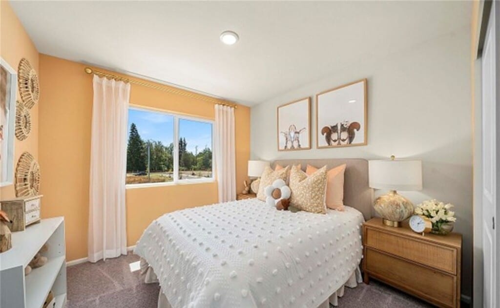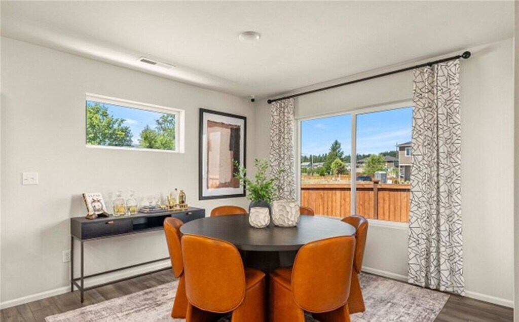 Discover modern comfort in the Luna at Daisy Heights, Century Communities’ newest neighborhood surrounded by mountain views and Pacific Northwest beauty. This thoughtfully designed two-story home offers 2,219 sq. ft., 3 bedrooms, 2.5 baths, and an open-concept layout perfect for both everyday living and entertaining. The main floor features a spacious great room and dining area that flow into a kitchen with an island and a corner pantry, plus a convenient half bath. Enjoy outdoor living with a welcoming front porch and a large back patio. Upstairs, a versatile bonus room connects to the full laundry room and all bedrooms. The primary suite includes a dual-sink vanity, a generous walk-in closet, and a private bath. Modern finishes, quality construction, and a peaceful community setting make the Luna an exceptional place to call home. No smokers or pets please.