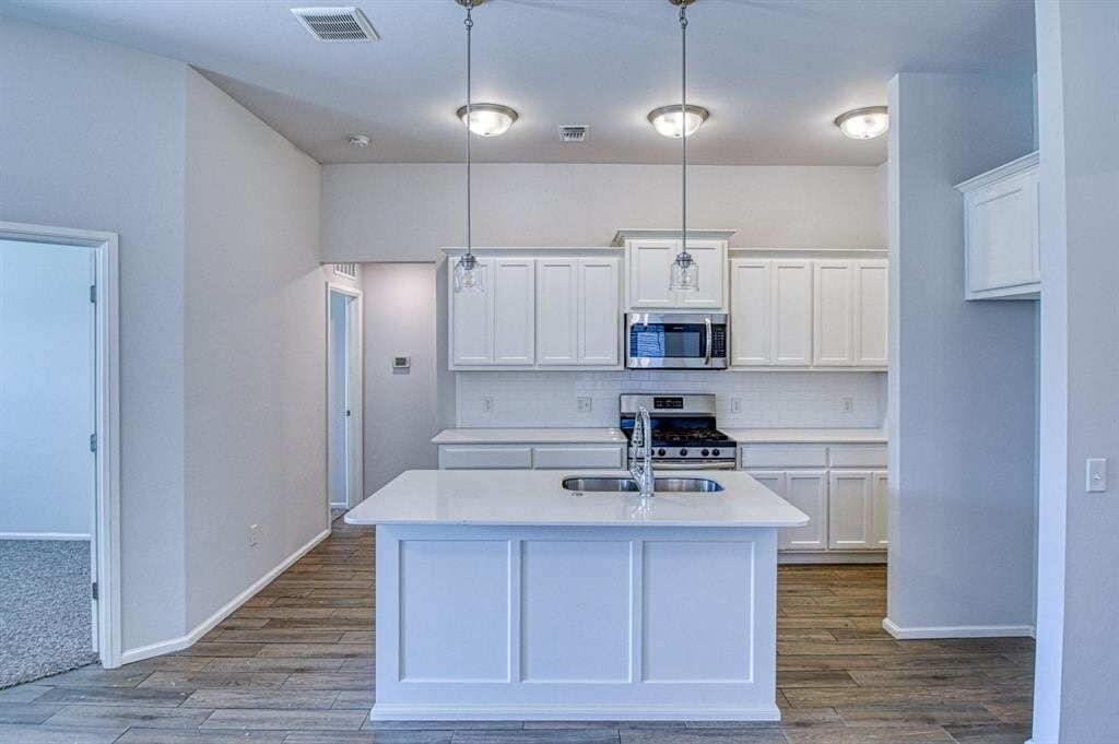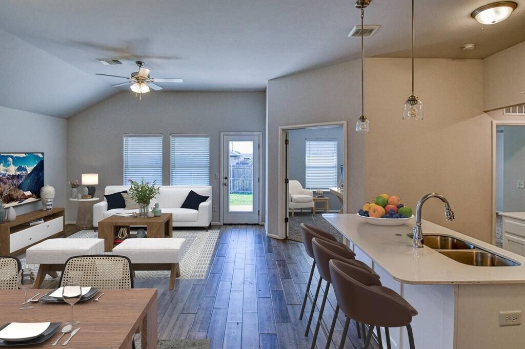 Charming 3-bedroom home with a study in the Castlewood Trails,a Yukon community located just minutes from Lake Overholser! The open living/dining/kitchen layout is perfect for entertaining or being part of the crowd even while cooking a meal! The kitchen boasts tiled backsplashes,quartz counters and island,and stainless-steel appliances with gas cook range. The study is carpeted,so it can double as a playroom or extra bedroom! The split floorplan allows for distance between the primary suite and secondary beds/ bath. Neighborhood amenities include a playground,splashpad,green spaces,and walking trails! Owner licensed.