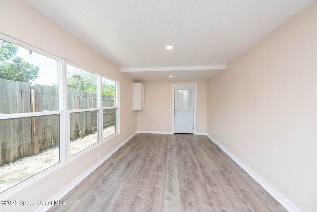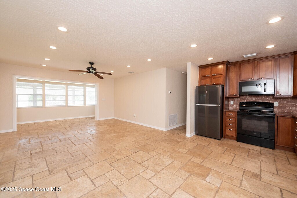 Tucked away in a quiet West Melbourne neighborhood,this unique three-bedroom,two-bathroom home blends charm with modern updates. Step inside to find travertine floors flowing through the main living areas,complemented by fresh interior paint and recessed LED lighting that brightens every corner. The open floor plan connects the spacious living and dining areas to an updated kitchen featuring sleek finishes,stainless steel appliances,and a custom pantry with a charming barn door accent. An oversized den provides the perfect flex space for entertaining,a home office,or recreational room. Outside,the fenced backyard is shaded by gorgeous mature oak trees,creating a peaceful comfortable feel with plenty of room to relax or play. A storage shed outback adds convenience for tools and extra storage,while the home's quaint character ensures comfort and warmth. There is plenty of parking out front in the semi-circle driveway w/ even more storage in the carport! Schedule a tour today!
