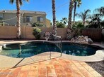 Resort style living at its best. Gorgeous backyard is a tropical oasis with waterfall,mature landscaping. Nestled in a cul-de-sac of the Coronado Ranch,3 car garage w/extended driveway,and RV gate. Open floor plan with a gracefully curved staircase and rod iron railing. Huge upstairs loft feature a Custom Cedar Log Bar. Granite countertop in gourmet kitchen and all bathrooms. Split master suite has a full bath with walk-in closet and double sinks w/makeup area. The main floor office has newly installed porcelain wood plank tiles. No carpet on the main floor. the downstairs office can be easily converted into a bedroom with a full bath right next to it.