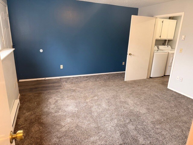 This townhome features two bedrooms, one upstairs and one downstairs. Each bedroom has a walk-in closet and bathroom, with the downstairs bedroom walks out to the back yard. Includes washer and dryer, an electric insert will be installed soon for the fireplace. Near a park and Oregon Trail elementary school. Dog OK, No cats for additional fee. Tenants are responsible for utilities (electricity and water)