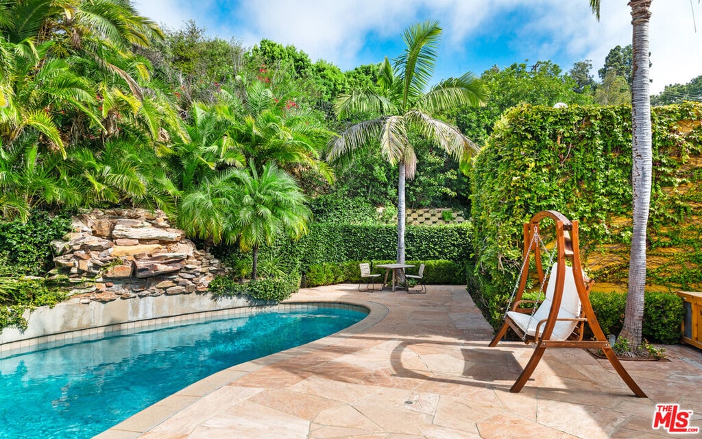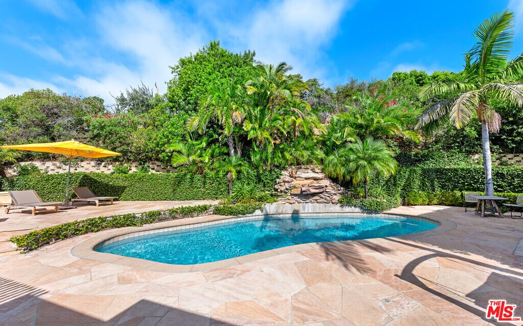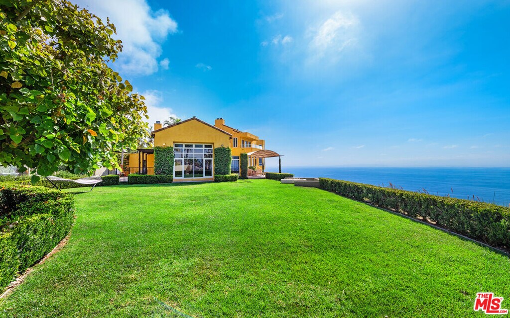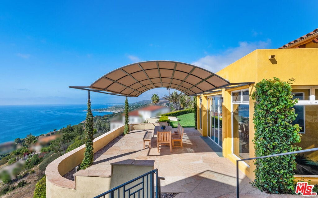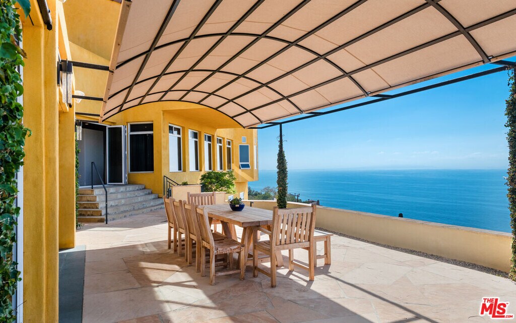 This private and gated adobe-style home offers sweeping ocean views and the valley below. The meticulously manicured grounds include a covered seating area on the patio and an adjacent lawn, ideal for entertaining. A firepit area and a resort-style pool with a waterfall complete the outdoor space. Inside this home is a large living room bathed in natural light from a multitude of windows and patio doors that envelop the enviable views of Malibu. High ceilings, hardwood flooring, built-in speakers, and a cozy fireplace provide ambiance in the living room. Granite countertops, Scandinavian-style cabinetry, and commercial-grade appliances outfit the upscale kitchen. With a Viking range and double oven, plus an additional oven, and a walk-in pantry, this kitchen is equipped to serve large gatherings of family and friends. This spacious home boasts a grand owner's suite plus four additional bedrooms. The owner's suite is outfitted with a stone fireplace, dual walk-in closets, and three sets of French doors that lead onto the expansive balcony that showcases sweeping views of the Pacific Ocean. The suite features dual bathrooms, a sauna, large walk-in, resort-style showers, and a bidet. Off the main bedroom is a private office featuring built-in cabinetry and a desk, plus access to the balcony. The four additional bedrooms are ample and two have ensuite baths and ocean views. This home also features a fully functional theatre room directly off the main living area, 220v power, a multi-zone A/C system, an alarm system, power shades, and a sprinkler system. Schedule your private showing today. MLS# 25595761