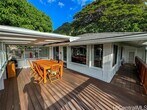 Hale Kapiolani is a serene single-story retreat tucked into the lush, beautiful valley of Manoa. This inviting 3-bedroom, 1.5-bath home blends classic charm with everyday comfort, offering a warm and thoughtful living experience. The home features a welcoming layout with a cozy den—perfect for reading, working, or relaxing—and shelves lined with books that lend character and a sense of home. Each bedroom is equipped with split A/C for personalized comfort, while the full bathroom includes a shower and bathtub for convenience. A stackable washer and dryer make daily living easy. Outside, a spacious partially covered lanai provides the ideal setting for morning coffee, outdoor dining, or simply taking in the valley’s natural beauty. With two dedicated parking stalls plus additional street parking, this Manoa gem offers peaceful residential living just a short distance from the University of Hawai‘i, schools, parks, and the vibrant amenities of Honolulu. A rare opportunity to enjoy comfort, charm, and the timeless appeal of one of O‘ahu’s most beloved neighborhoods.