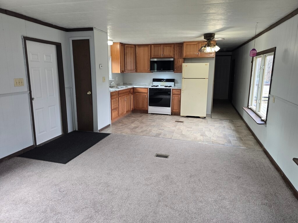 Nice Private location, mobile home, with new carpet & paint near Fort Drum. Paved driveway & parking area. Newly installed kitchen cabinets and floor. Nat gas heat. New overhead door in rear yard storage shed.