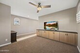 Welcome to a home that was designed for real life,real usage,and real fun. Perfectly positioned in a cul-de-sac with no front or rear neighbors,this four bedroom home offers privacy that is rare and immediately felt the moment you arrive. A three car tandem garage provides ample space for vehicles,storage,or a home gym setup. Inside,the layout checks every box,starting with a full ensuite bedroom downstairs,ideal for guests,multigenerational living,or a private home office. The heart of the home has been completely refreshed with full interior paint,creating a bright,cohesive feel throughout. The living room centers around a custom entertainment wall with a built-in fireplace,making it the perfect gathering space for family nights or hosting friends. The kitchen flows seamlessly into everyday living and features one of the most impressive storage upgrades in the home. A fully built wraparound pantry tucked under the stairs provides an incredible amount of hidden storage that families truly appreciate. Upstairs,you will find three additional bedrooms plus a spacious loft,offering flexibility for a kids' play area,homework zone,media space,or home office. The loft also features a custom entertainment center,making it an ideal second living space. All bedrooms feature brand new carpet with high grade padding for comfort and durability. Every bathroom in the home has been thoughtfully remodeled with new cabinets and vanities,complemented by high quality,comfort height power flush toilets. The upstairs bathroom also includes a brand new shower,continuing the clean,modern feel throughout. The laundry room has been fully upgraded with new custom cabinetry and countertops,transforming it into a functional and polished space that actually makes daily life easier. A whole home water filtration system is already in place,providing clean,filtered water throughout the home. Step outside and discover a true backyard retreat built for Arizona living. Enjoy a PebbleTec play pool with Baja bench and water features,a built-in putting green,and a private hot tub,all designed for both relaxation and fun. A gas stub-out is ready for your custom grill,making entertaining effortless. The yard is completed with a brand new custom side gate featuring a smart lock,adding both convenience and security. Additional upgrades include a newly epoxied garage,adding both style and durability to a space often overlooked. This home combines thoughtful upgrades,an ideal family friendly layout,and a resort style backyard in one of Vistancia's most desirable settings. It is move-in ready,highly functional,and truly one of a kind.