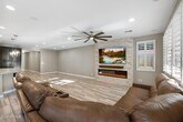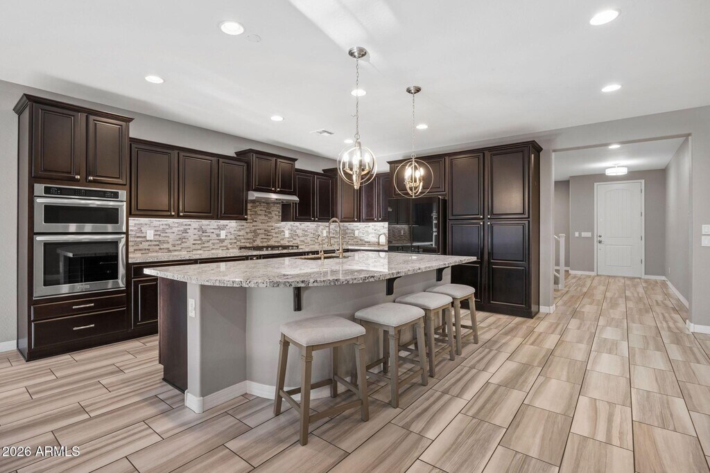 Welcome to a home that was designed for real life,real usage,and real fun. Perfectly positioned in a cul-de-sac with no front or rear neighbors,this four bedroom home offers privacy that is rare and immediately felt the moment you arrive. A three car tandem garage provides ample space for vehicles,storage,or a home gym setup. Inside,the layout checks every box,starting with a full ensuite bedroom downstairs,ideal for guests,multigenerational living,or a private home office. The heart of the home has been completely refreshed with full interior paint,creating a bright,cohesive feel throughout. The living room centers around a custom entertainment wall with a built-in fireplace,making it the perfect gathering space for family nights or hosting friends. The kitchen flows seamlessly into everyday living and features one of the most impressive storage upgrades in the home. A fully built wraparound pantry tucked under the stairs provides an incredible amount of hidden storage that families truly appreciate. Upstairs,you will find three additional bedrooms plus a spacious loft,offering flexibility for a kids' play area,homework zone,media space,or home office. The loft also features a custom entertainment center,making it an ideal second living space. All bedrooms feature brand new carpet with high grade padding for comfort and durability. Every bathroom in the home has been thoughtfully remodeled with new cabinets and vanities,complemented by high quality,comfort height power flush toilets. The upstairs bathroom also includes a brand new shower,continuing the clean,modern feel throughout. The laundry room has been fully upgraded with new custom cabinetry and countertops,transforming it into a functional and polished space that actually makes daily life easier. A whole home water filtration system is already in place,providing clean,filtered water throughout the home. Step outside and discover a true backyard retreat built for Arizona living. Enjoy a PebbleTec play pool with Baja bench and water features,a built-in putting green,and a private hot tub,all designed for both relaxation and fun. A gas stub-out is ready for your custom grill,making entertaining effortless. The yard is completed with a brand new custom side gate featuring a smart lock,adding both convenience and security. Additional upgrades include a newly epoxied garage,adding both style and durability to a space often overlooked. This home combines thoughtful upgrades,an ideal family friendly layout,and a resort style backyard in one of Vistancia's most desirable settings. It is move-in ready,highly functional,and truly one of a kind. MLS ID 6996795