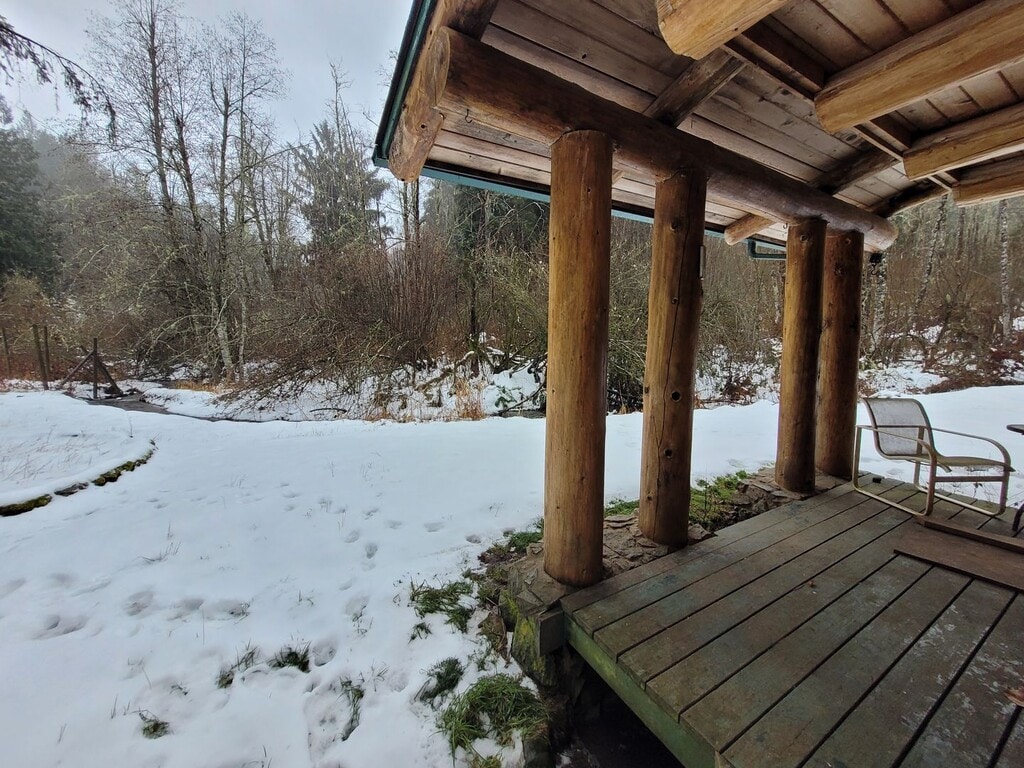 Beautiful Log Cabin on Acreage off Mosquito Lk Rd. Located on a serene Lot with running stream just outside of Deming and Acme, WA. This charming home offers a cozy retreat with its log cabin style and ample natural light that fills every corner. With 2 bedrooms and 1 & 3/4 bathrooms, this property provides the perfect space for relaxation and quiet. The open floor plan seamlessly connects the living area, office, kitchen, and dining space, creating a warm and inviting atmosphere. Hardwood floors add a touch of rustic elegance, The well-equipped kitchen features a dishwasher, electric range and large fridge making meal preparation a breeze. The full bath on the main floor includes a stack washer and dryer as well a lovely claw foot tub with a large window to enjoy the natural setting of the forested backyard. An office space is also available on the main floor, allowing you to work from the comfort of your own home. Upstairs you will find the two bedrooms and a 3/4 bathroom. The primary bedroom features a lovely window seat offering a peaceful spot to enjoy the surrounding forested views and overlooking the babbling stream. Both bedrooms have recently had vinyl plank flooring installed (not pictured here). Just outside the kitchen your deck awaits, providing the perfect spot for outdoor gatherings or simply enjoying the tranquility of the surrounding nature. Ample parking and a carport ensure that your vehicles are well accommodated. Additionally, a large barn is available for all your storage needs. Don't miss the opportunity to make this charming log cabin your own peaceful retreat. Contact us today to schedule a viewing and experience the beauty and serenity of the Mosquito Lake Rd. Heat is a combination of Electric Baseboard, Propane Fireplace and a mini-split on the main floor of the house. Tenants are responsible for all utilities and maintaining the landscaped area of the yard. Home is on a private well and septic system. NO smoking is allowed. One Dog Possible with approval, deposit and fee. To View a 360/3D walk through please visit: All information provided is deemed reliable but is not guaranteed and should be independently verified. A $50 fee ($45 application and $5 processing fees) is required for each application. If approved, a $65 administrative fee is required. THESE FEES ARE NONREFUNDABLE. For more information and to see all of our listings please visit our website at or give us a call at . OMNI Property Management, 909 Squalicum Way STE 107, Bellingham, WA 98225