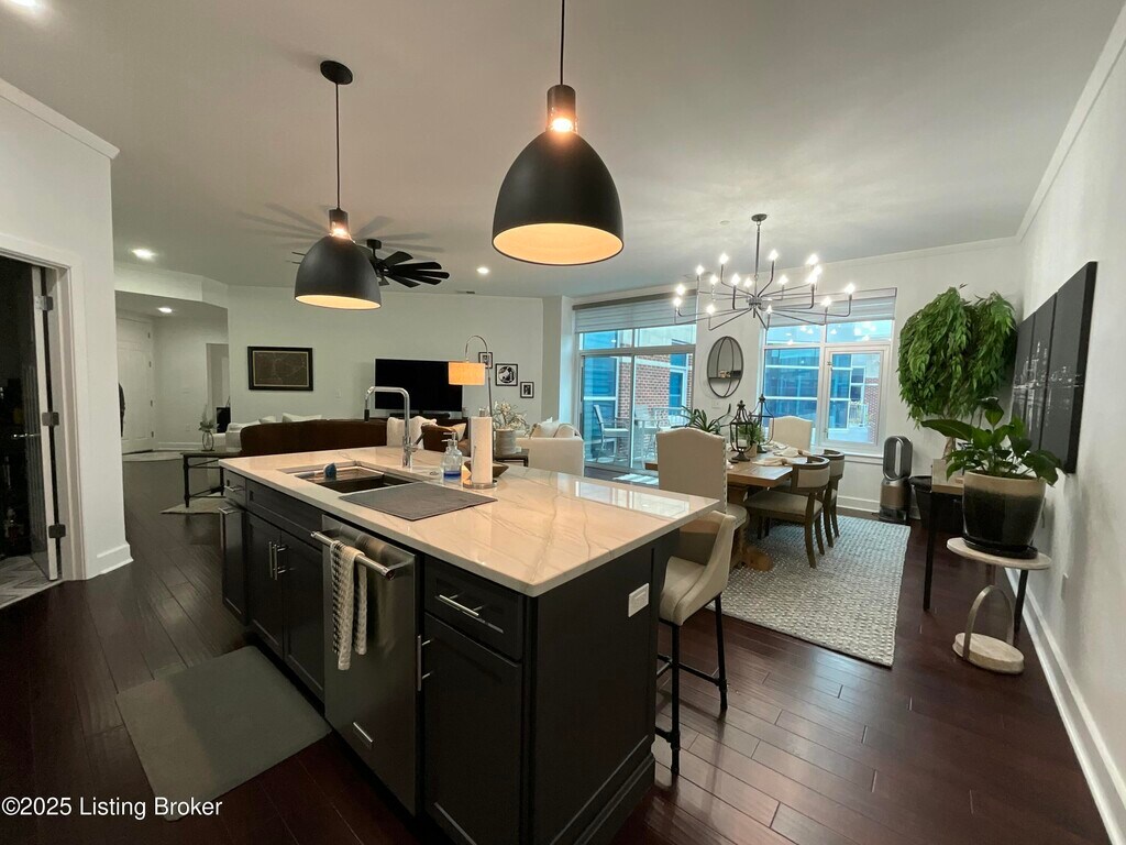 Fully furnished and all-inclusive$2,400/month covers everything (utilities,internet,parking,and HOA). Move right in to this top-floor 2BR/2BA,1,524 sq ft condo at Fleur de Lis on Main,curated for comfort and convenience. The home includes premium bedding,Smart TVs,stocked kitchenware,and a full coffee bar built into the pantry. Extensively updated since late 2022 with quartz countertops,KitchenAid gas double-oven range,KitchenAid dishwasher,and fresh paint throughout. Enjoy floor-to-ceiling windows,a private balcony,and in-unit washer/dryer. The primary suite offers a jet tub,walk-in shower,and generous closet space. Includes two secure garage spaces,extra storage,and access to fitness center,courtyards,and loungesteps from Nulu,UofL Health,and downtown dining.